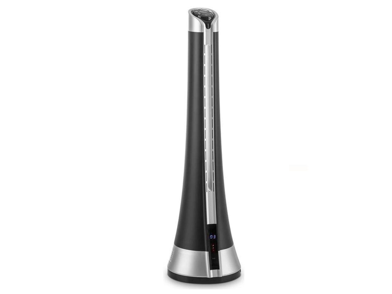 Věžový ventilátor nabízí pět nastavitelných rychlostí proudění vzduchu pro regulaci podle osobních preferencí a možností místnosti. Zapínatelná funkce oscilace otáčí ventilátor volitelně o 30, 60, 90 nebo 120°, takže rozproudí masy vzduchu a čerstvý vzduch se dostane do všech koutů místnosti. Další zlepšení vzduchu zajišťuje zapínatelný ionizátor, který nabíjí vzduch zápornými ionty. Tyto ionty přitahují částice prachu a zápachu a nechají je klesnout k zemi. S výkonem 32 W navíc patří mezi nejvíce energeticky účinné zástupce svého druhu a dokonce i v nepřetržitém provozu je úsporný.