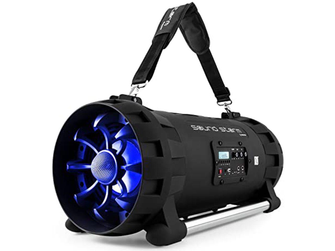 Bezdrátový reproduktor auna Soundstorm Ghettoblaster vás zaujme už na první pohled svým designem. Disponuje LED osvětlením, které je řízeno hudbou. Reproduktor bude svítit podle vaší oblíbené skladby. Robustní skříň disponuje ochrannou hliníkovou konstrukcí, která odolá venkovním podmínkám. Ramenní popruh vám umožní snadné ovládání. Aby byly probíhat párty venku, reproduktor rozzáří dunící tóny.