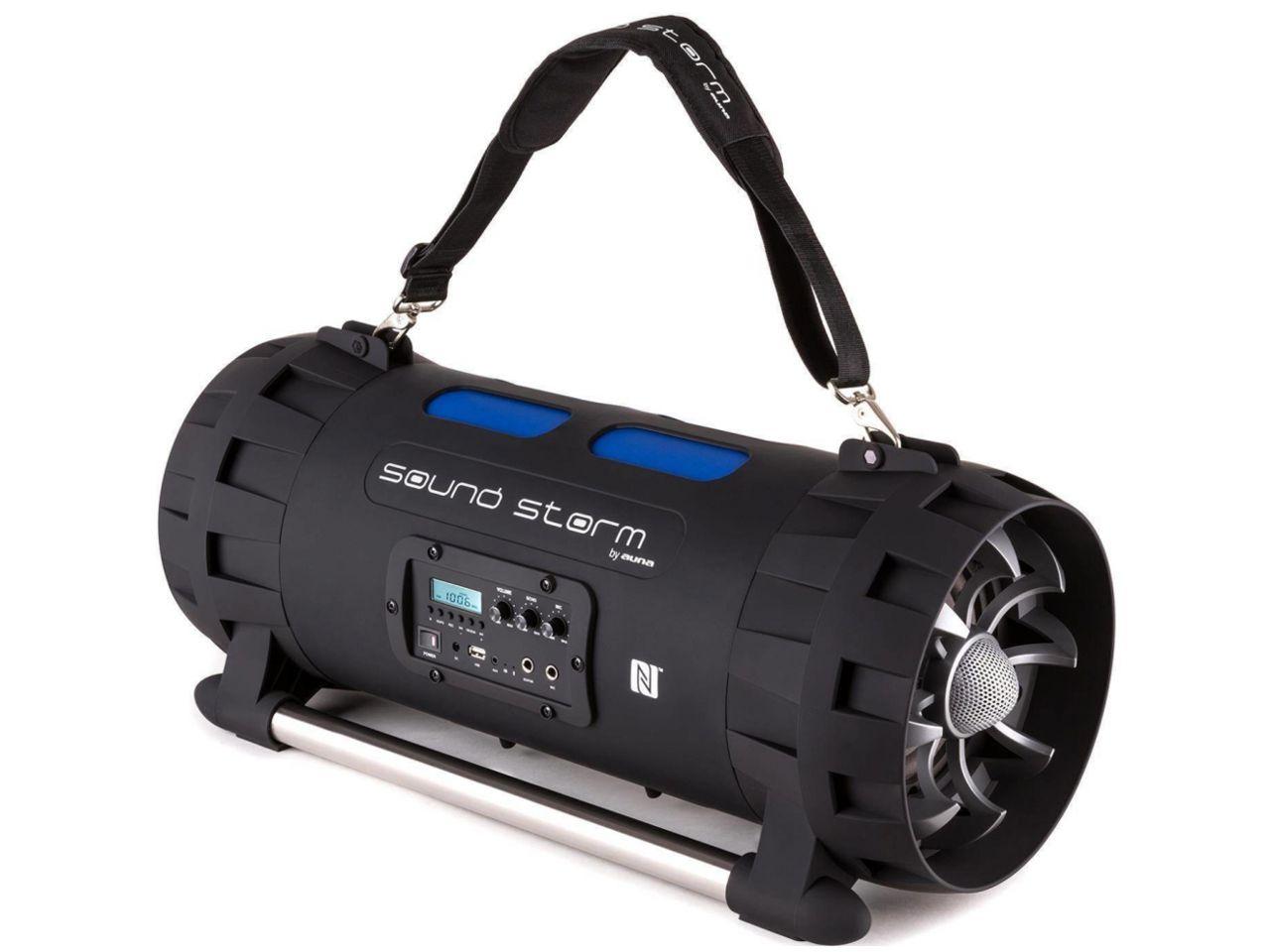 Zařízení auna Soundstorm Ghettoblaster představuje výkonného společníka pro nadšence Boombox. Akumulátorový reproduktor poskytuje maximální zvukový zážitek a to díky jeho vysoké míře mobility. Srdce reproduktoru tvoří integrovaný zesilovač s širokopásmovým reproduktorem pro dosažení co nejvyššího výkonu. Díky dobrým zvukovým vlastnostem bluetooth reproduktor zobrazuje široké zvukové spektrum.