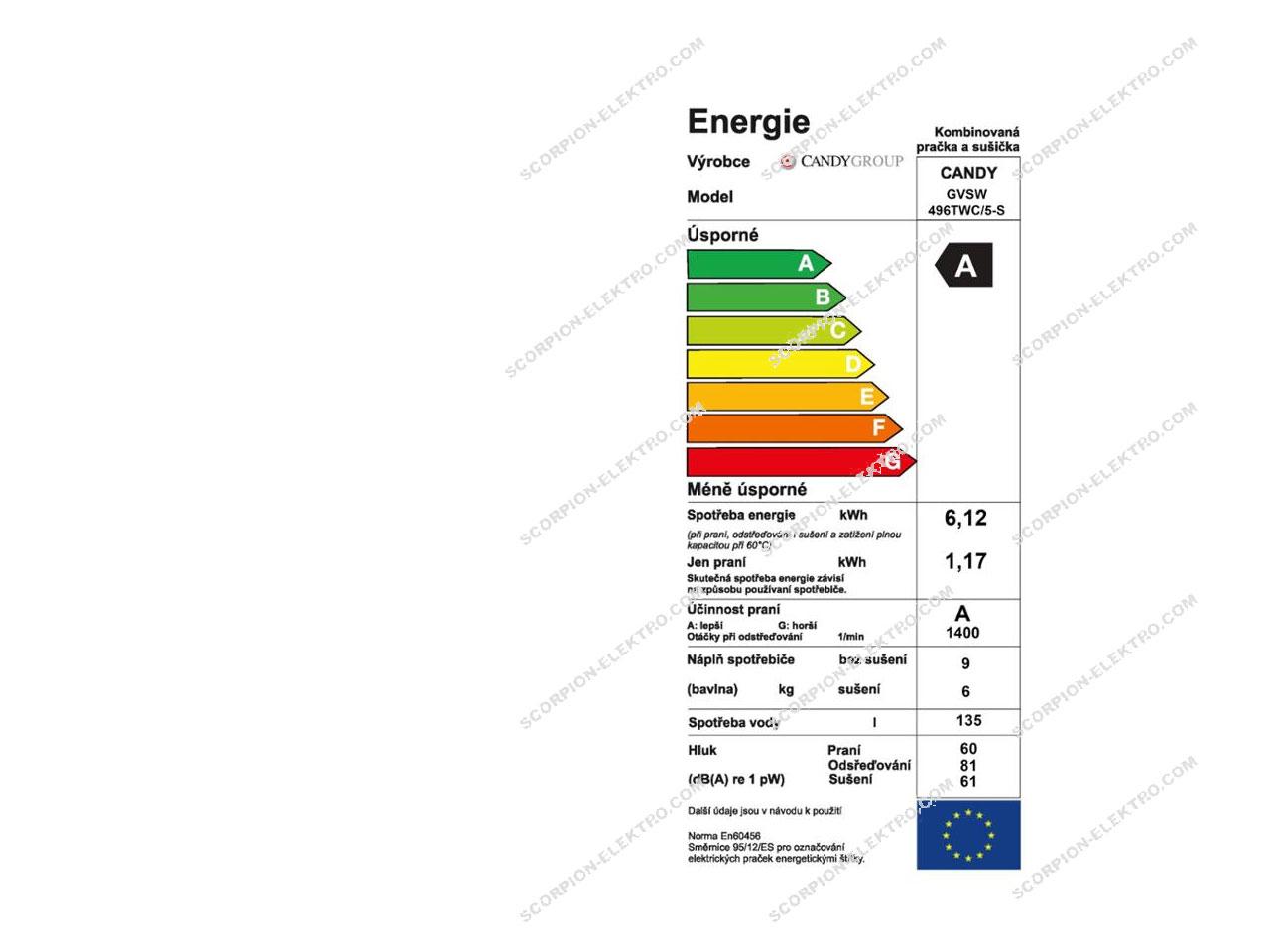 Spotřeba energie na jeden cyklus (praní a sušení při plné náplni): 6,12 kWh