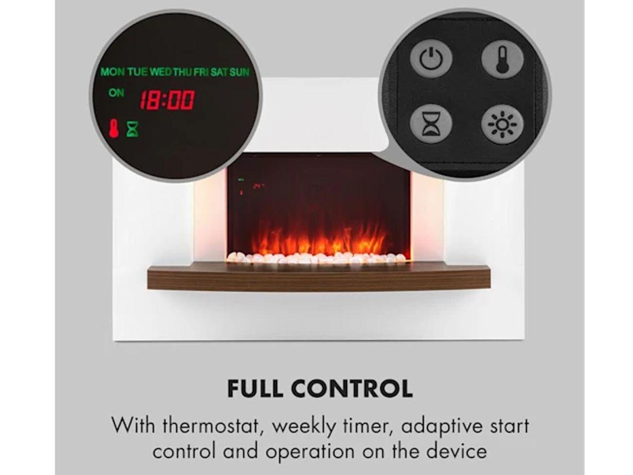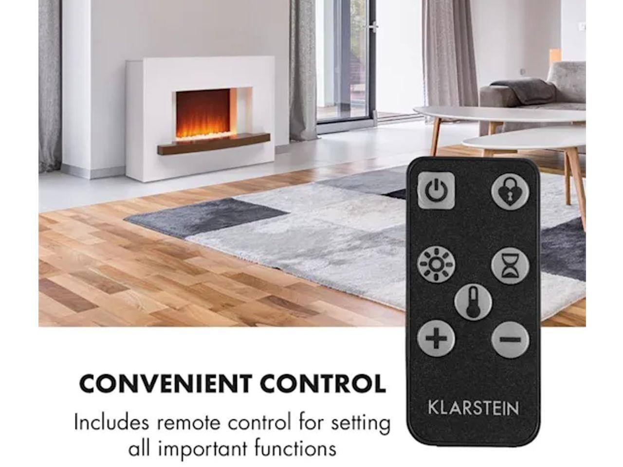 O příjemné teplo se postará přepínatelná funkce vytápění, která ohřívá místnosti ve dvou úrovních s volitelným výkonem 1000 nebo 2000 W nebo díky integrovanému termostatu neustále udržuje teplo na požadované teplotě. K dispozici je i týdenní časovač, který umožňuje specifické programovací funkce vytápění na každý den v týdnu. Ovládání elektrického krbu Klarstein Montreux probíhá jednoduše a přímo na zařízení nebo pohodlně pomocí dodávaného dálkového ovladače. Bezpečnost a ekonomičnost provozu jsou samozřejmě nejvyšší prioritou, proto má krb ochranu proti přehřátí a dětskou pojistku. Detekce otevřeného okna Open Window Detection upozorňuje na otevřená okna, aby se předešlo zbytečné spotřebě energie.