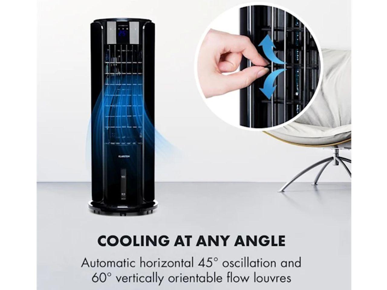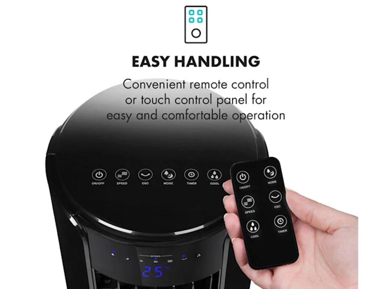 Díky svému oblému tvaru je chladicí systém Klarstein Skyscraper Horizon novým vzorem z hlediska vzhledu a opouští známou cestu kubistického designu zařízení. Jeho ovládací panel je rovněž moderní, pohodlně lze vybírat všechny funkce pomocí dotykových tlačítek na zařízení nebo prostřednictvím dálkového ovládání. Kromě toho lze naprogramovat časovač vypnutí až na 8 hodin v hodinových krocích. Integrovaný displej přehledně zobrazuje zvolené možnosti.