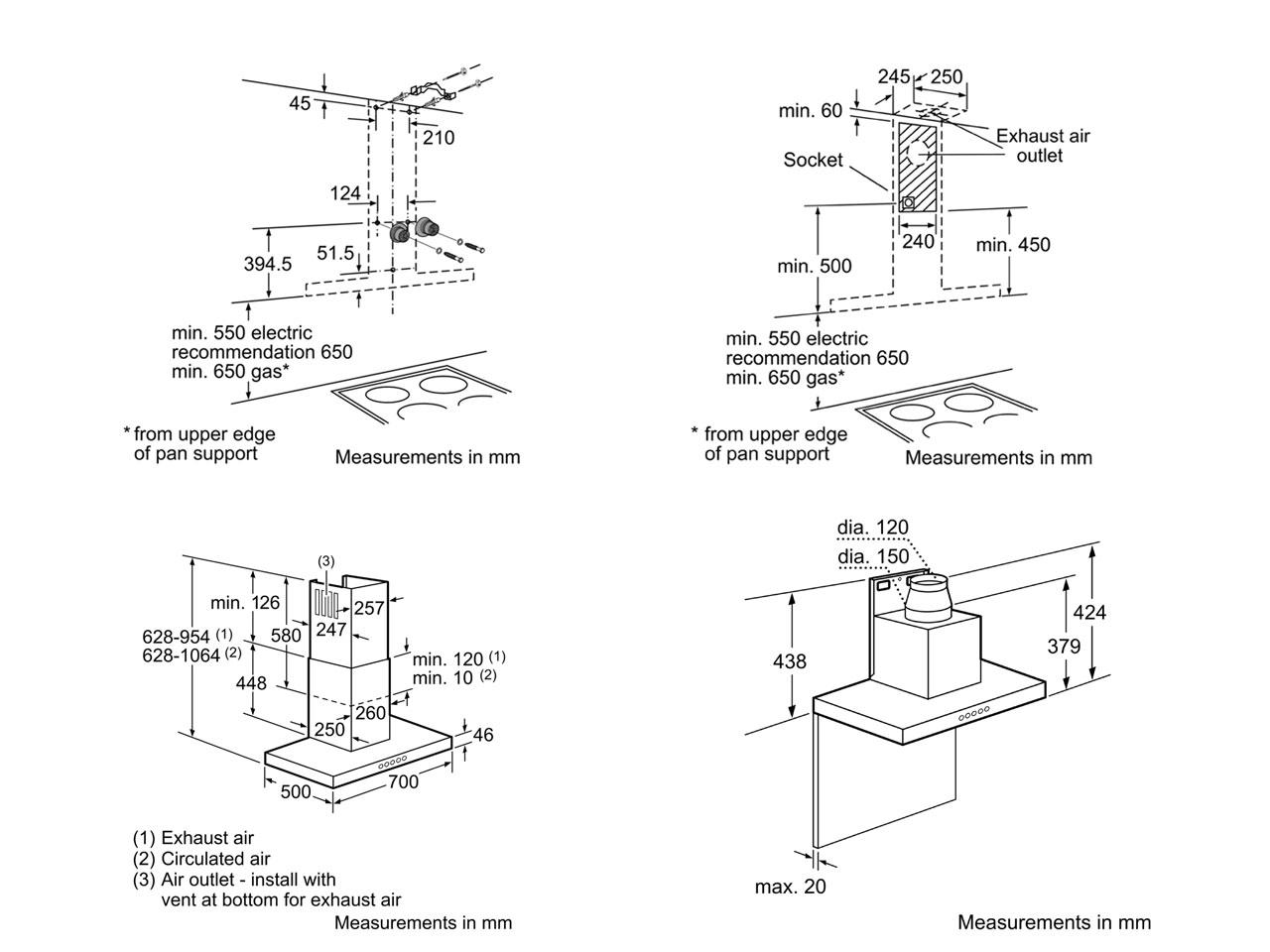 Rozměry výfuk vzduchu (v x š x h): 628-954 x 700 x 500 mm