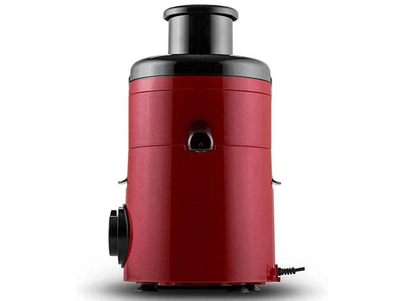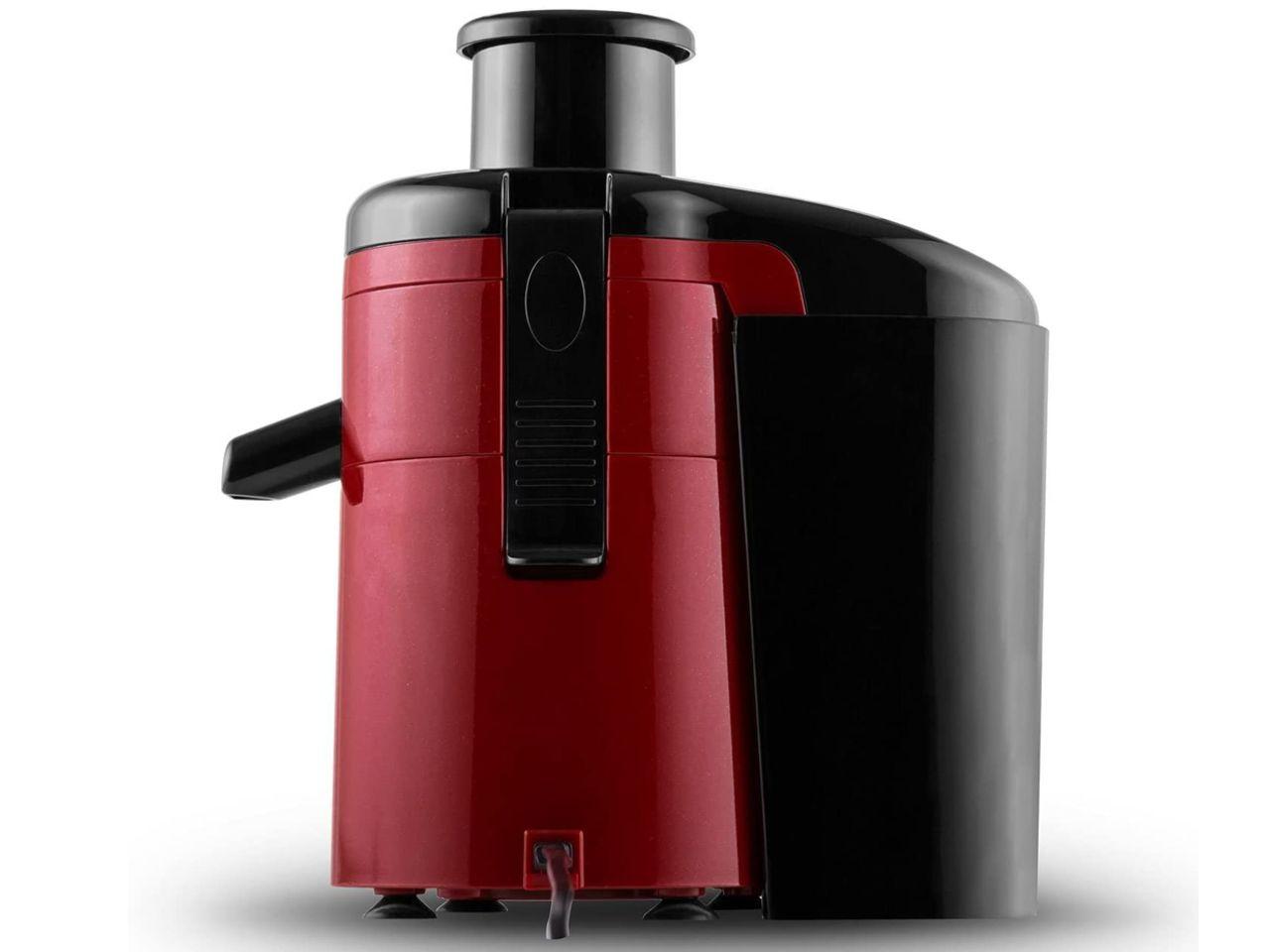 Oblá konstrukce odšťavňovače se vyznačuje lesklým červeným vzhledem a černými částmi. Díky malým rozměrům se zařízení vejde i do menších kuchyní či stísněných prostor.