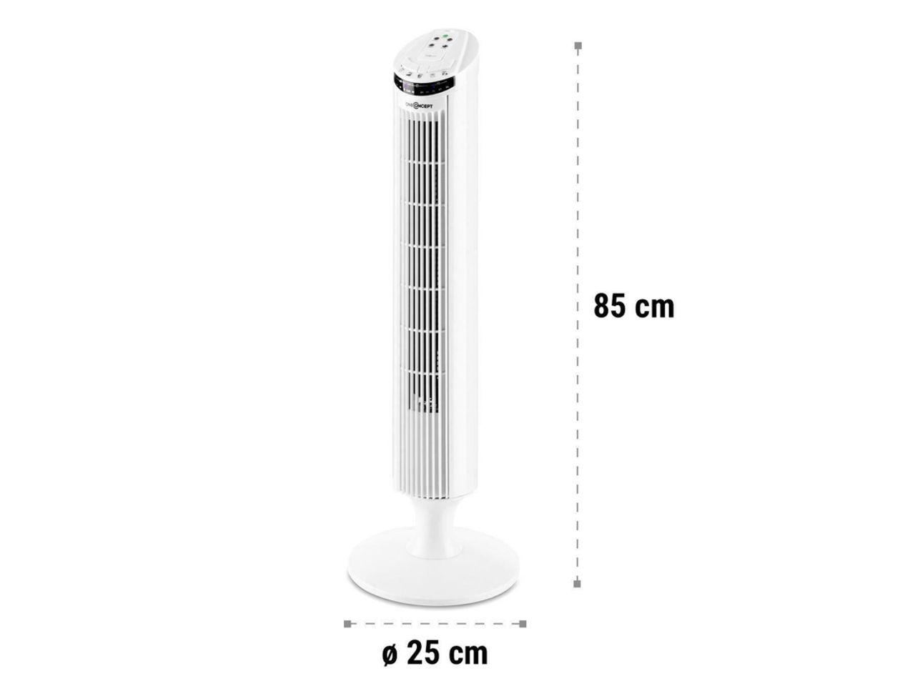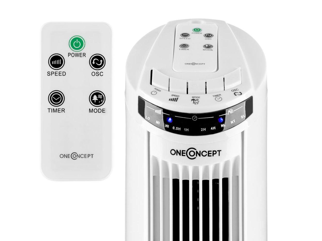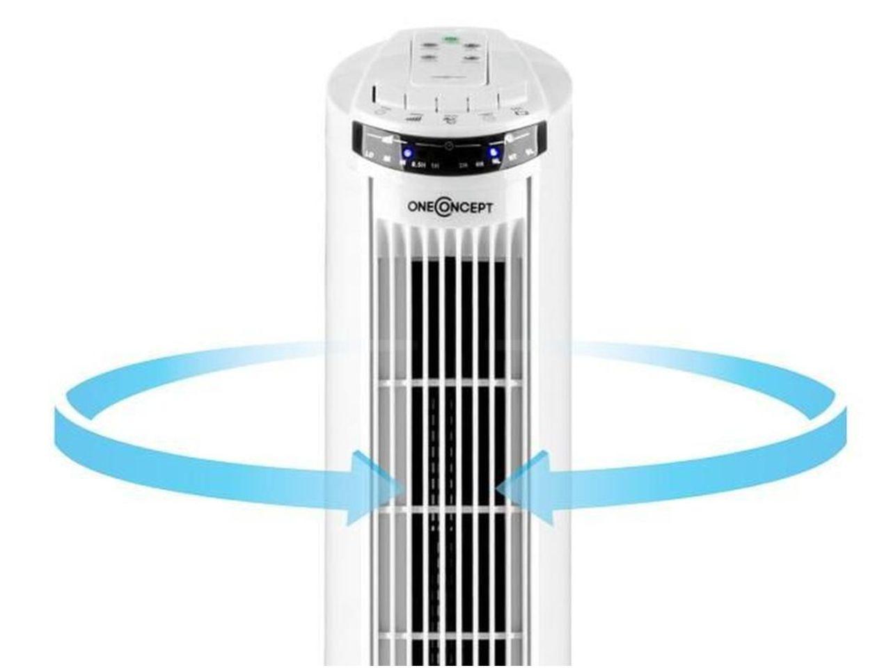 Ledově studené osvěžení během teplých letních dnů: oneConcept Blitzeis sloupový ventilátor přináší svěží vzduch, který Vás příjemně ochladí. Severská svěžest: se sloupovým ventilátorem oneConcept Blitzeis pracují tři rychlostní stupně pro přání svěžího vzduchu během horkých dnů. A to není všechno: ventilátor má také zapínatelnou oscilaci, která přivede sloupovou konstrukci do kmitavého 45 ° pohybu a ještě lépe provětrá místnost. Máte k dispozici tři různé ventilační režimy - kromě normálního režimu i režim přirozeného větru a režim spánku. Nastavitelný časovač můžete použít k automatickému zapnutí nebo vypnutí po 0,5 až 7,5 h. Sloupový ventilátor oneConcept Blitzeis můžete ovládat buď přes srozumitelné dotykové ovládací pole na vrchní straně, nebo úplně pohodlně přes dodávané dálkové ovládání. Jeho displej je vybaven LEDkami, které ukazují v jednoduše srozumitelných piktogramech nastavené parametry i režimy.