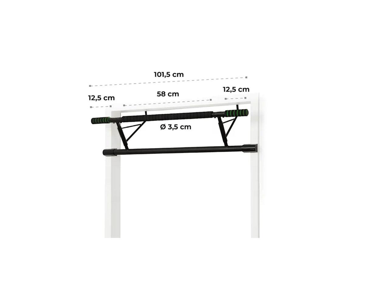 Masivní tréninkové zařízení z oceli s práškovaným lakováním jednoduše bez montáže zavěsíte na zárubeň dveří a po tréninku ho znovu složíte. Se svou nosností až 130 kg je hrazda vhodná pro téměř každého atleta. Díky rovné tyči je vhodná na pull ups se širokým úchopem, ale i na chin ups s úzkým úchopem - o pevný, bezpečný úchop se postará hrubé pěnové opláštění. Další výhodou vyvýšené hrazdy, ve srovnání s mnoha běžnými zárubňovým hrazdami, je možnost trénovat ve visu. Aby trénink na dveřích nezanechal žádné stopy, hrazda je vybavena speciálními, měkkými EVA-pads.