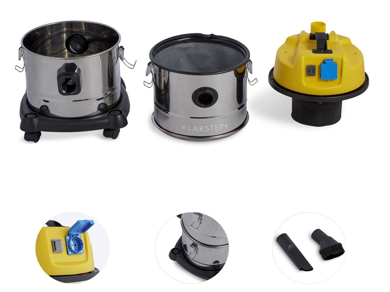 Víceúčelový vysavač Klarstein Reinraum 3-in-1 o výkonu 1800 W zvládá vysávání za mokra i za sucha. Jeho hlavními přednostmi jsou funkce dmychadla a odsávání popela. S vysavačem hravě vysajete hladké povrchy i koberce, díky nástavcům si poradíte také s vysáváním čalouněného nábytku nebo zaprášených regálů. Veškeré nečistoty se zachytávají v objemné nádrži z ušlechtilé oceli. Jakmile se sběrná nádoba zaplní, budete upozornění výstražným signálem. Ve spodní části nádrže vysavače, která je vyrobena z ušlechtilé oceli tloušťky 0,4 mm, se nachází speciální nasávací otvor na vysávání popela.