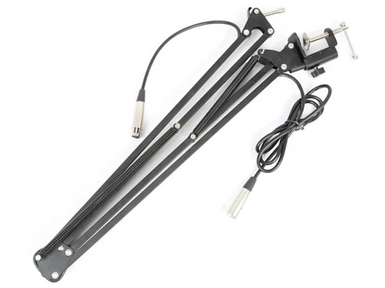 Dodávaný mikrofonní držák je vhodný pro běžné kabelové mikrofony. Mikrofonní rameno je dodatečně vybaveno zabudovaným XLR kabelem.
