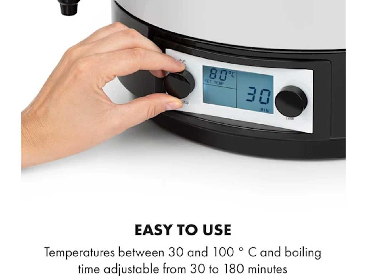 Jednoduché ovládání: nastavení teploty mezi 30 a 100 °C a zavařovací čas od 1 do 180 minut