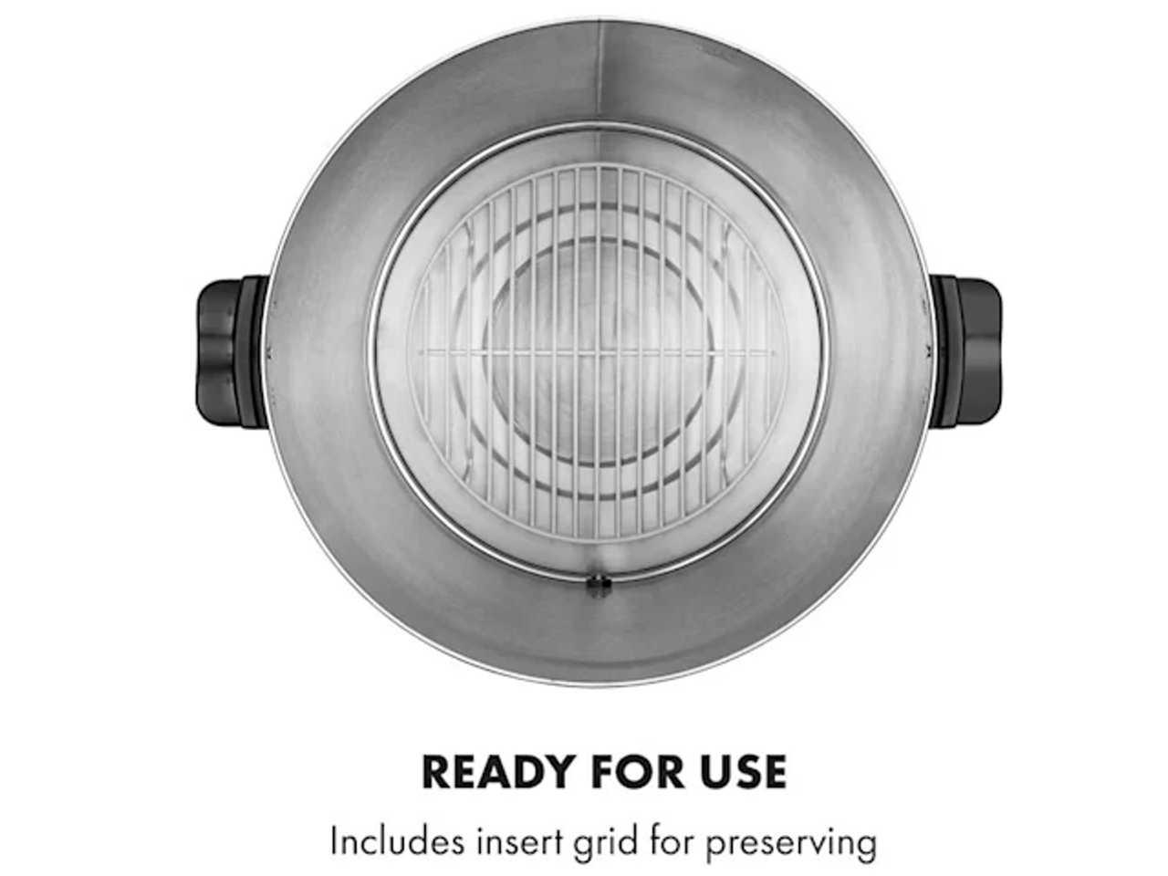 I z venku působí zavařovací automat Klarstein KonfiStar 50 digital velmi dobře. Vnější plášť je vyrobený z leštěné nerezové oceli přes černý kovový podklad. Úchyty Cool-Touch umožňují snadnou přepravu, uzávěr poklice se postará o to, aby poklice pevně držela na místě a aby se obsah zůstal uvnitř.