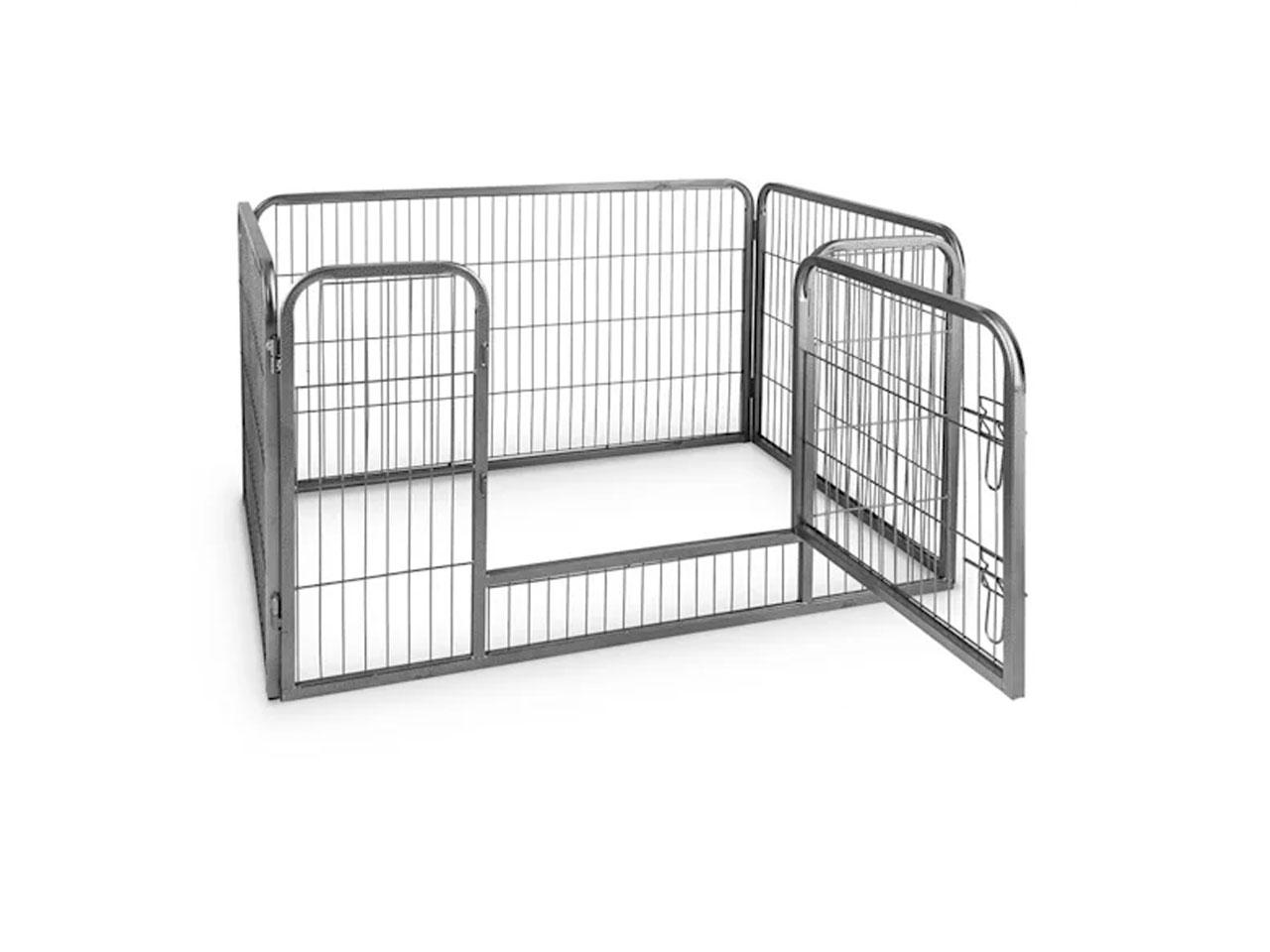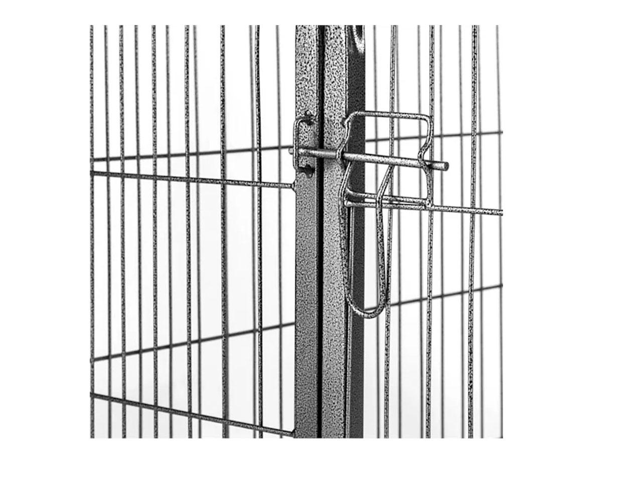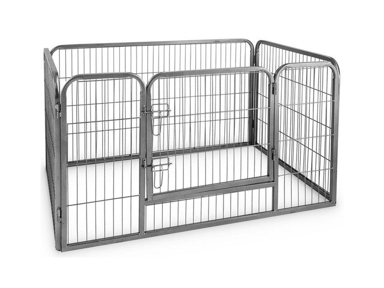 Čtyři postranní díly svým zásuvným systémem nabízejí snadnou manipulaci s ohradou a její přestavbu. Rozložený výběh zaplňuje plochu cca 1 m2. Zabudované dvířka s velikostí 55 x 53 cm usnadňují vstup zvířete do klece. Dvě závory dokonale jistí dvířka před otevřením.