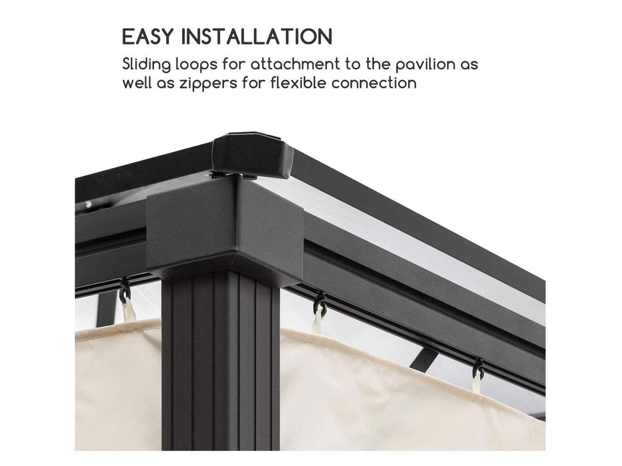 Jednoduchá instalace: posuvné smyčky na připevnění na altán a zipy pro flexibilní připojení