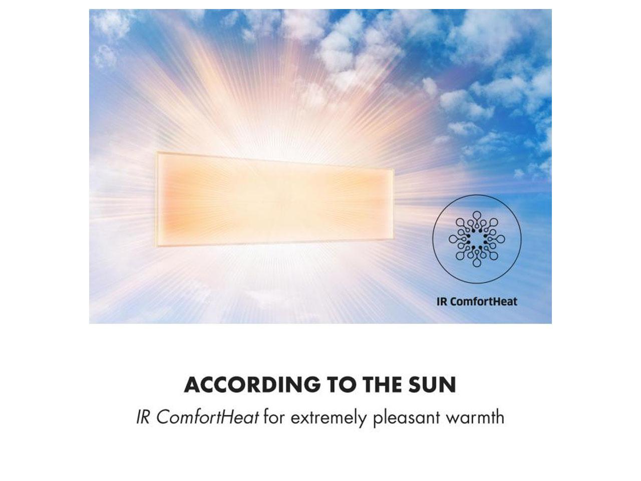 Nejnovější technologie k vytvoření příjemného tepla: infračervený ohřívač Klarstein Wonderwall přináší teplo do každé místnosti velmi efektivním a prostorově úsporným způsobem. Infračervený ohřívač Wonderwall představuje revoluci ve vytápění díky moderní technice. Velmi plochý výhřevný panel s velikostí 30 x 100 cm lze zavěsit přímo na stěnu nebo strop, díky čemuž představuje maximálně prostorově úsporné topné řešení. S výkonem 300 W šíří k lidské pokožce velmi příjemné infračervené teplo, které je vyzařováno cíleně na osoby v blízkosti ohřívače. Topný panel je zároveň velmi energeticky úsporný: Díky technologii IR Comfort Heat se přemění až 95% výkonu na tepelné vyzařování.