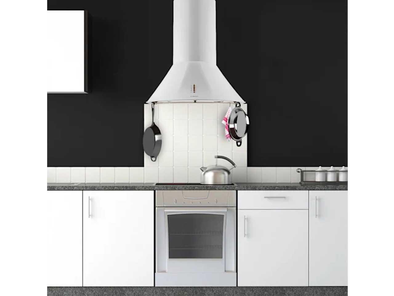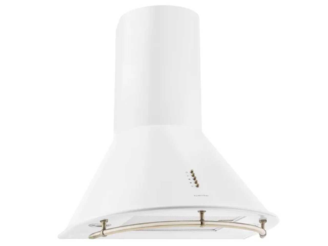 Bílý lesklý komínový odsavač par se třemi úrovněmi výkonu