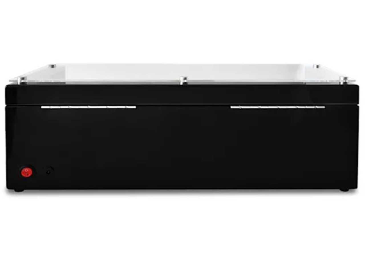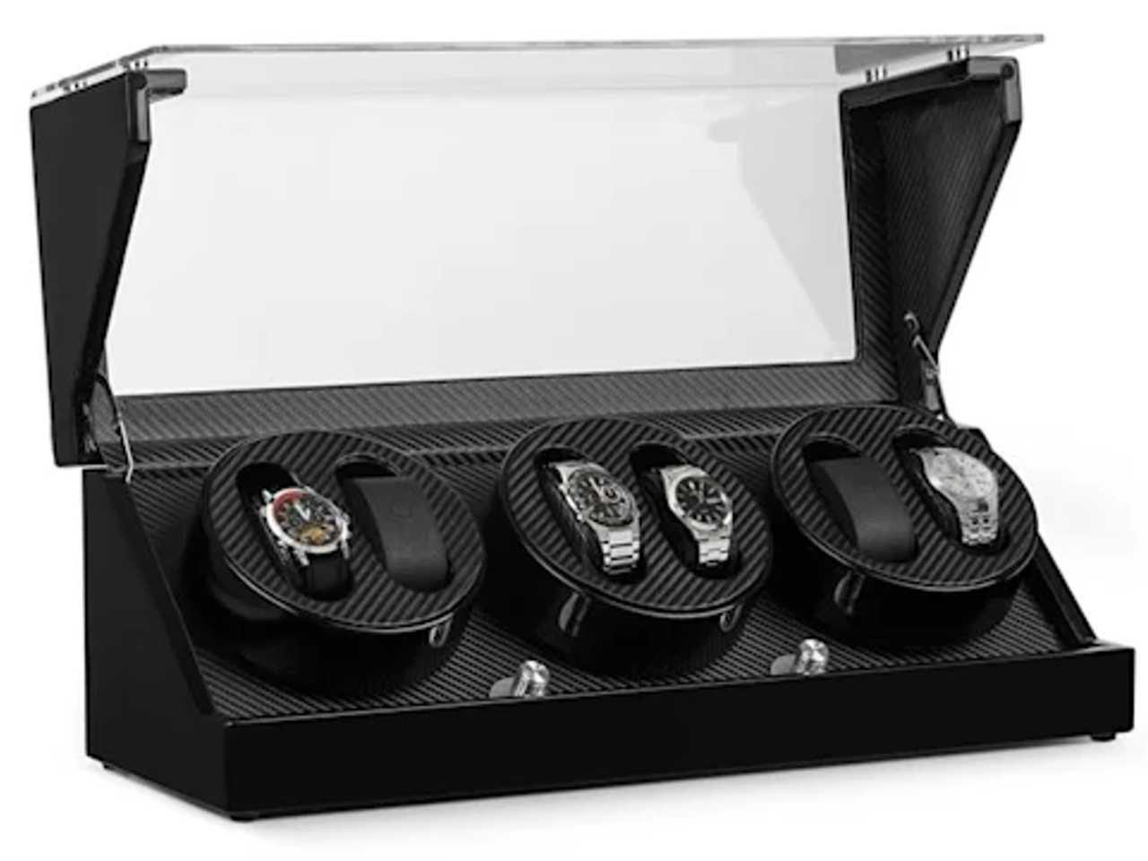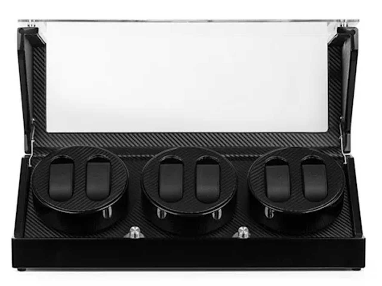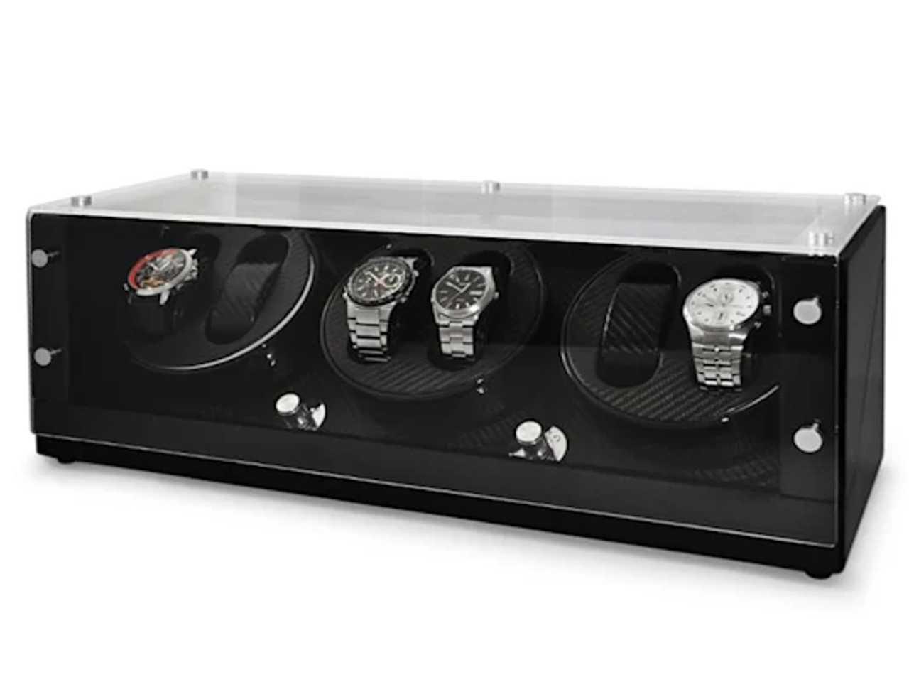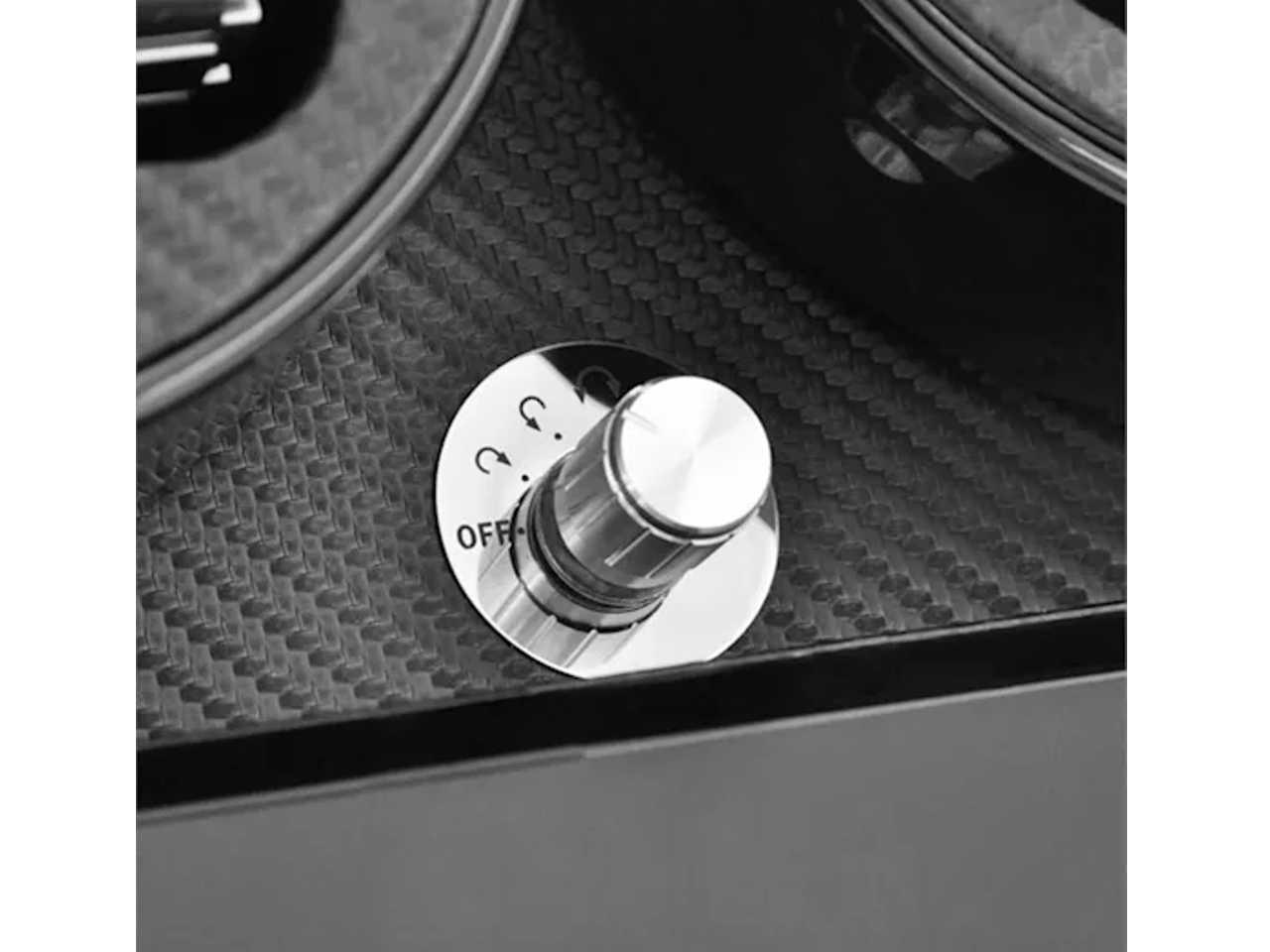Ručně vyrobený korpus zařízení je pokryt několika vrstvami černého, opakovaně leštěného piano laku. Prostorné okénko z akrylátového skla, zpracované bez okrajů, umožňuje volný pohled do interiéru, jehož delikátní karbonový design vystavuje uschované hodinky s jemnou elegancí.