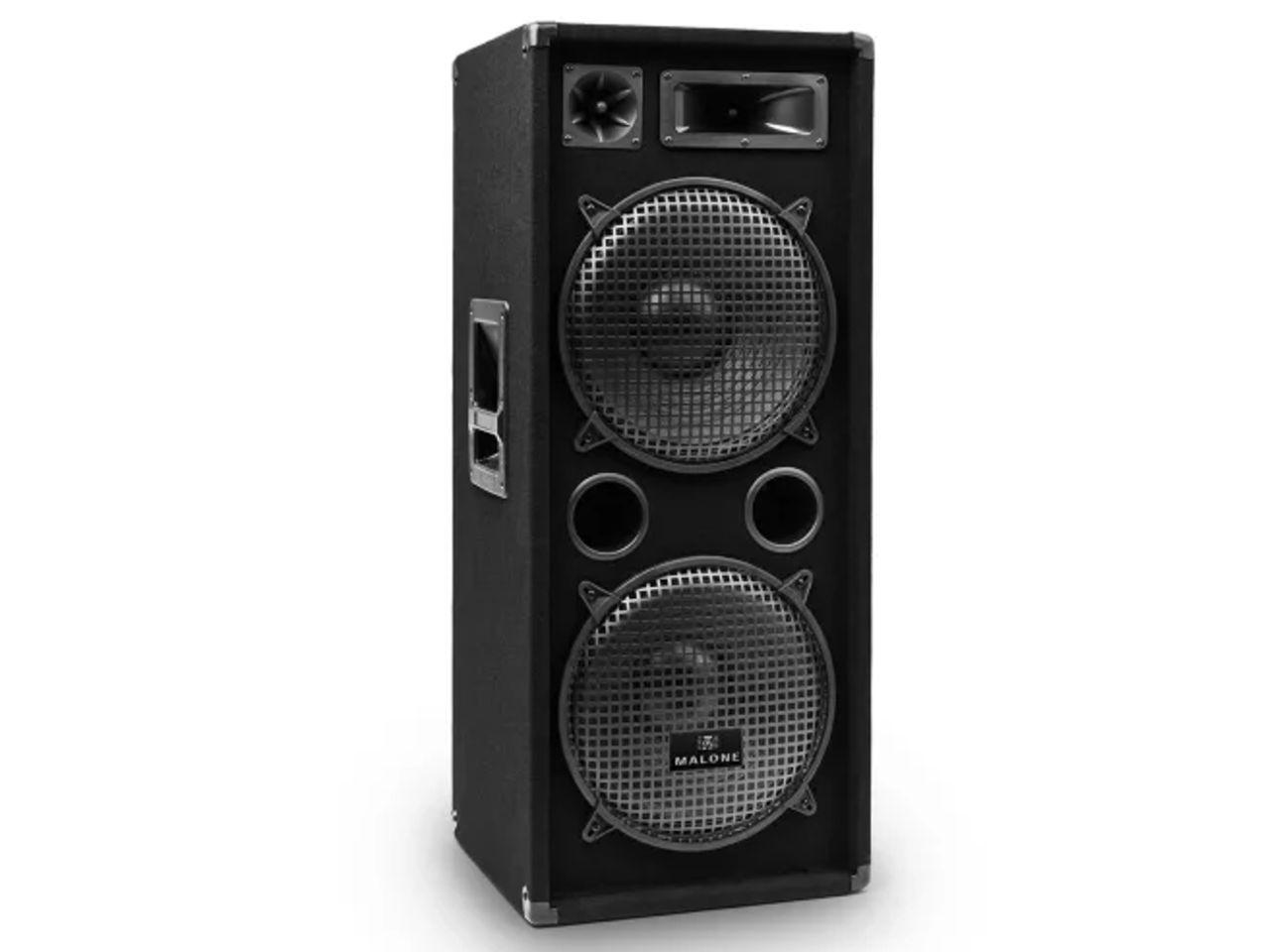 Třípásmový reproduktor s dvěma patry a s 2 x 30 cm (12“) subwooferem, basy a výškové piezo