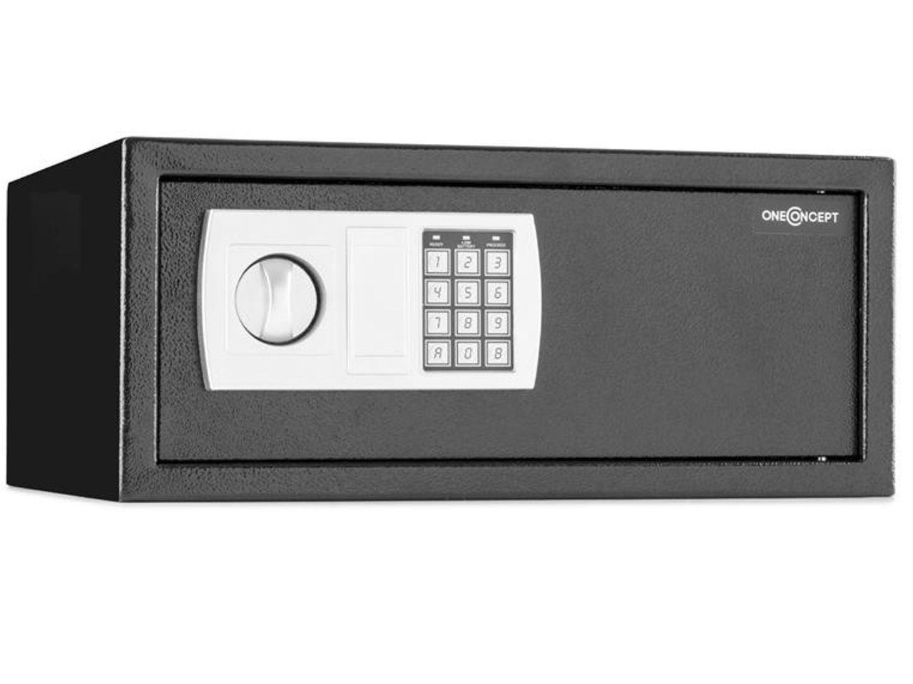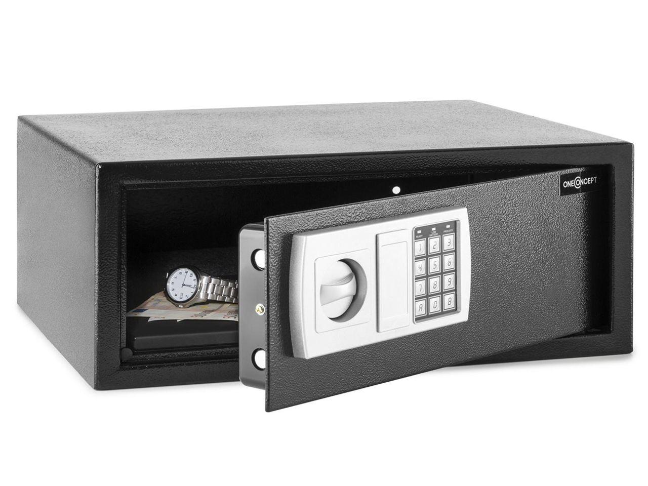 Masivní ocel pro maximální bezpečnost: oneConcept Hotelguard Laptopsafe. Na vše, co chcete uzamknout před nechtěnými pohledy, Vám poslouží Hotelguard Laptopsafe s objemem 35,9 litrů- ocelový bunkr pro 17" notebooky, cennosti a dokumenty. Celý popis