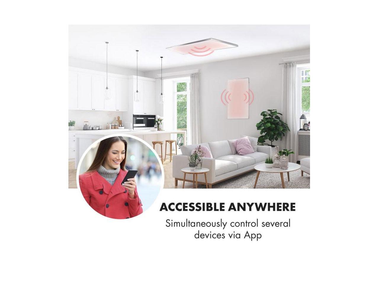 S termostatem a promyšlenými funkcemi, jako jsou WiFi a aplikace Klarstein App Experience, splní infračervený ohřívač i ty nejnáročnější požadavky. Aplikace, která se dá zdarma stáhnout, přeměňuje jakýkoliv smartphone na dálkový ovladač, který může ovládat neomezený počet zařízení díky funkci MultiCommand. Dokonce i mimo domov je možné pomocí aplikace ovládat a programovat ohřívače v síti. Nastavitelný týdenní časový spínač umožňuje programování časů topení na každý den týdnu. A protože zařízení Wonderwall pracuje bez ventilátoru, je ultra tichý díky technologii ZeroNoise Infrared a nevíří prach - což z dělá z tohoto ohřívače ideální volbu pro alergiky.