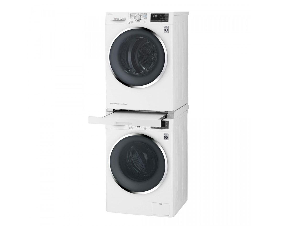 Výsuvný mezikus LG DSTWH v bílé barvě - bezpečná instalace sušičky na pračku. Vhodný pro pračky s hloubkou 55 cm a více. Celý popis
