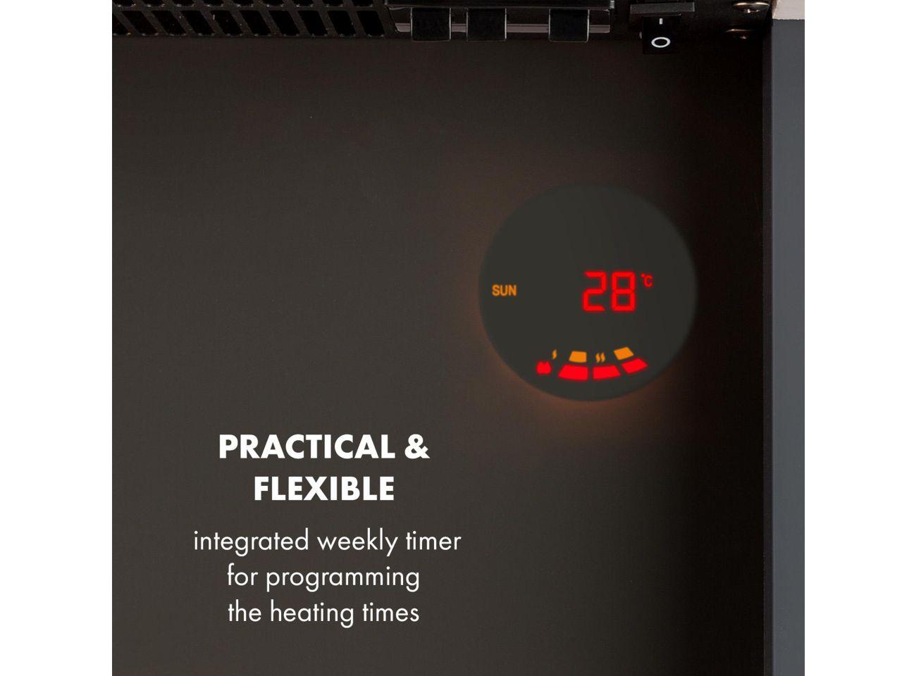 Kdo říká, že krby se nehodí do moderních bytů? S elektrickým krbem Klarstein Studio 1 přichází vhodné, elegantní doplnění ve stylu salonků. Jeho krbová skříň z bílého dýhovaného MDF dřeva s jednoduchými a přímými liniemi přichází zcela bez ozdob a okázalosti a dodává otevřené přední části krbu ještě luxusnější rámec. Skleněné díly zesilují efekt, takže všechny pohledy budou směřovat přímo realistické LED iluzi plamenů. Plameny zaplanou díky samostatnému zapínání zcela nezávisle na ohřívači, jak během chladných zimních dnů, tak i během teplých letních nocí – romantika u krbu v každém ročním období. O příjemné teplo se volitelně postará integrovaný elektrický ohřívač, který zahřívá místnosti do 40 m² ve dvou úrovních výkonu při 1000 nebo 2000 W. Aby romantickou atmosféru nic nenarušilo, elektrický krb Studio 1 od společnosti Klarstein lze pohodlně ovládat pomocí dálkového ovládání. Ještě větší pohodu zajišťuje týdenní časovač, pomocí kterého lze topný cyklus jednoduše naprogramovat na celý týden – takže vždy, když přijdete domů nebo ráno vstanete, budete mít příjemně teplo.