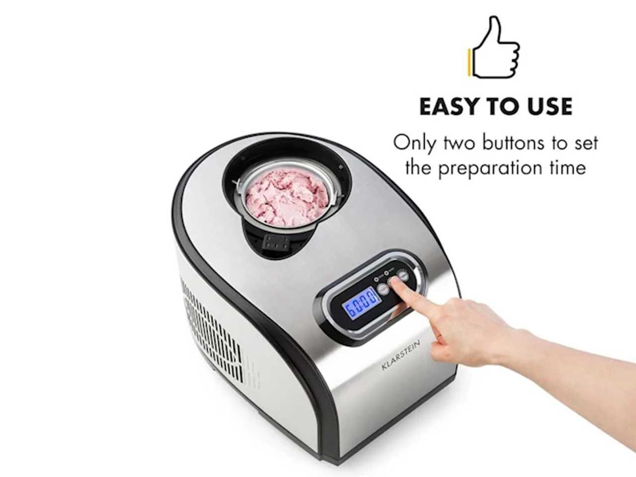 Ovládání zmrzlinovače díky intuitivním tlačítkům na horní straně je velmi rychlá. Se dvěma tlačítky a digitálním displejem se nastavuje doba přípravy mezi 10 a 60 minutami a může být zahájena příprava. Během přípravy se na displeji zobrazí zbývající čas. Po dokončení přípravy se výrobek přepne do režimu chlazení tak, aby se zmrzlina neroztavila. Součástí balení je také naběračka na zmrzlinu.
