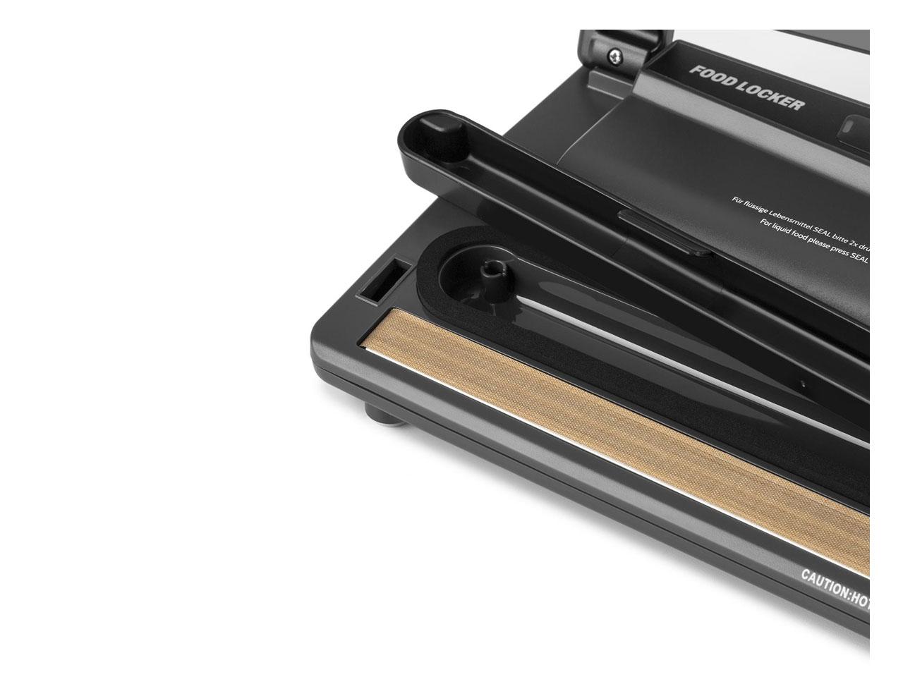 Čerstvé bylinky, blanšírovaná zelenina a marinované maso. Foodlocker Slim uzavře potraviny dvojitým švem. To zvýší jejich trvanlivost a chrání před skvrnami způsobenými mrazem. Plochý, kompaktní a výkonný: v protikladu k ostatním vakuovacím zařízením je Foodlocker Slim je nanejvýš nenáročný, co se týče prostorových podmínek a s výkonem 130 W pracuje jako profík. Díky tlumiči je jeho výkon jen viditelný, ale ne slyšitelný. S odsávací silou až -0,75 bar a rychlosti odsávání 9 l / min vákuuje a zapečetí