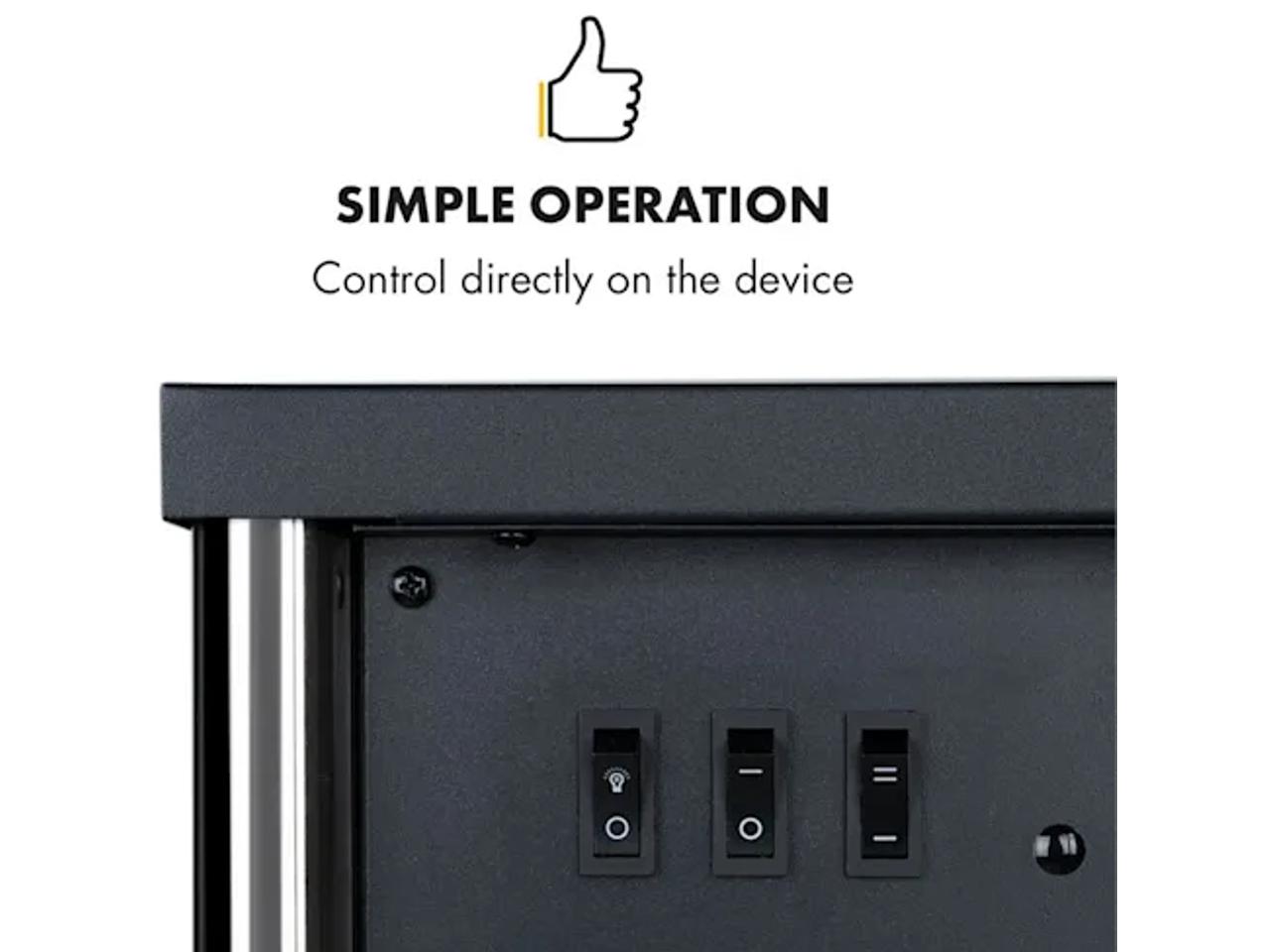 Plameny z úsporného LED osvětlení "šlehají" nezávisle na výhřevné funkci i během letních nocí a postarají se vždy o romantickou atmosféru. O příjemné teplo se na přání postará zapínatelná výhřevná funkce, která místnost vyhřeje s 950 nebo 1900 W podle volby. Zařízení přitom ovládáte jednoduše, přímo na krbu. Se spínači na zadní straně lze zapnout efekt plamene a ohřev prostřednictvím termostatu je možné kontrolovat teplotu.