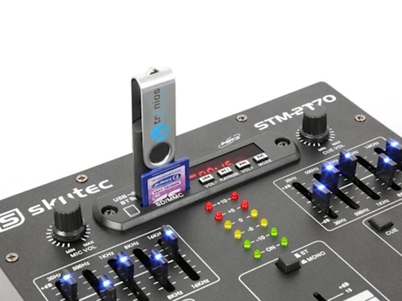 DJ mix nabízí možnosti připojení pro všechny běžné audio zdroje (gramofony, CD přehrávače a počítače). Možnost připojení mixu je doplněna USB portem, přes který lze přehrávat skladby ve formátu MP3 přímo z paměťových nosičů, jako jsou USB klíče a MP3 přehrávače. K nejdůležitějšímu patří integrované bluetooth rozhraní, které umožňuje bezdrátové streamování hudby z bluetooth zařízení jako smartphony, tablety, laptopy a počítače. Rozsah funkcí ukončuje slot pro SD paměťové karty.