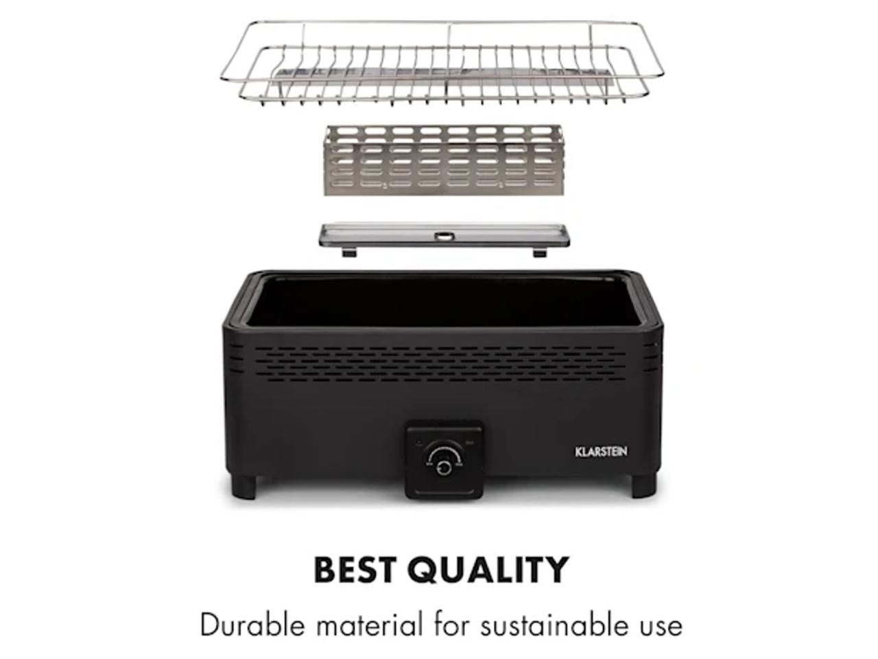 Pro dokonalý požitek z grilování bez kouře se nejprve naplní odnímatelná nádoba na palivo dřevěným uhlím, které lze v okamžiku zapálit pomocí ventilačního boxu napájeného baterií. Smaltovaná grilovací mřížka s velikostí 31 cm (Ø) rozděluje generované teplo na celou grilovací plochu a přeměňuje velmi rychle maso, klobásky a grilovanou zeleninu na šťavnaté speciality. Díky šikovnému designu, který zabraňuje odkapávání tuku z jídla na dřevěné uhlí, vytváří gril nepatrné množství kouře. Ať už na zahradě, v prérii nebo ve městě, gril na dřevěné uhlí Micro-Q 3131 od společnosti Klarstein je skutečně všestranný. Gril tě může zcela jednoduše doprovázet na každém místě v odolné tašce na přenášení s praktickými držadly. Užij si dobrodružství: gril na dřevěné uhlí Klarstein Micro-Q 3131 je gril na cesty!