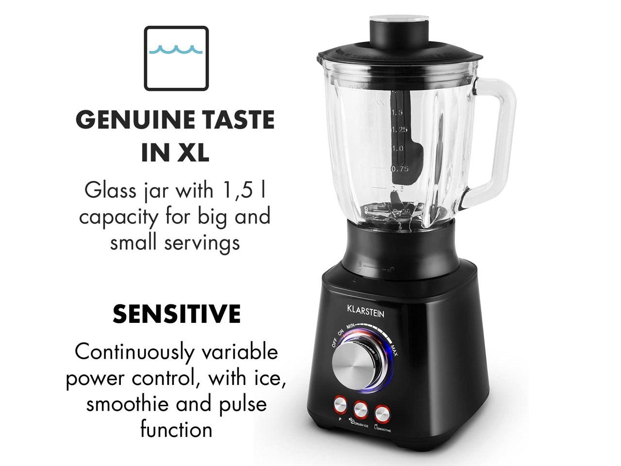 Kdo rád jí, ten si stolní mixér od výrobce Klarstein oblíbí! Motor a nožová jednotka perfektně spolupracují. Příprava chutných smoothies se díky výkonu 1000 W daří obzvláště jednoduše a spolehlivě. S atraktivní skleněnou nádobou je současně k dispozici i pěkný dávkovač ovocné šťávy. Celý popis