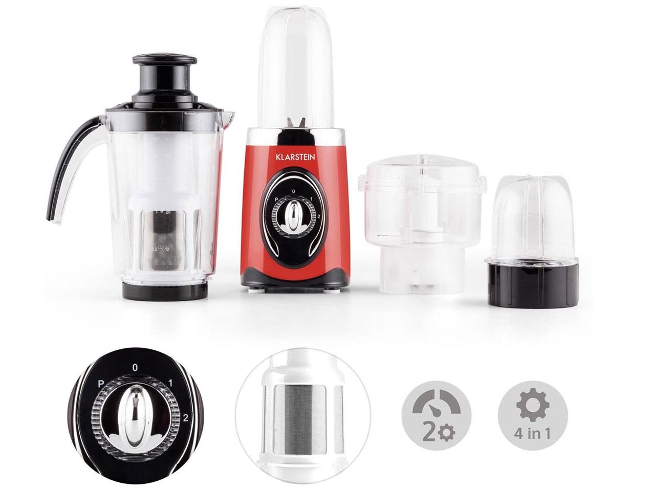 Silný motor výkonem 220 W účinně umixujeme (s použitím 4 čepelového nástavce), rozseká (s použitím nástavce s plochými břity) nebo poseká (s použitím sekacího nástavce) vše, co mu přijde na čepel. Zařízení disponuje dvěma rychlostními stupni i pulzní funkcí Klarstein mixér vybavil i třemi nádobami s různým objemem: malou 200 ml sklenicí, velkou 400 ml sklenicí a mixovacím džbánem o objemu 1000 ml. Na přípravu lahodných šťáv stačí do mixovacího džbánu vložit filtr a během pár chvil ze zařízení získáme centrifugu. Filtrovací sada obsahuje i vlastní pěchovadlo a malou odměrku. Mixér se hodí na přípravu různých dipů, omáček či ovocných drinků. Praktičnost zařízení zvyšují kryty na sklenice, které umožňují nosit nápoje s sebou nebo je pohodlně uskladnit v lednici. Zařízení je také snadno omyvatelné - čepele lze mýt samostatně a sklenice s kryty jsou omyvatelné v myčce. Malé rozměry zařízení (průměr jen 12 cm) předurčují mixér i do menších kuchyní.uizooka