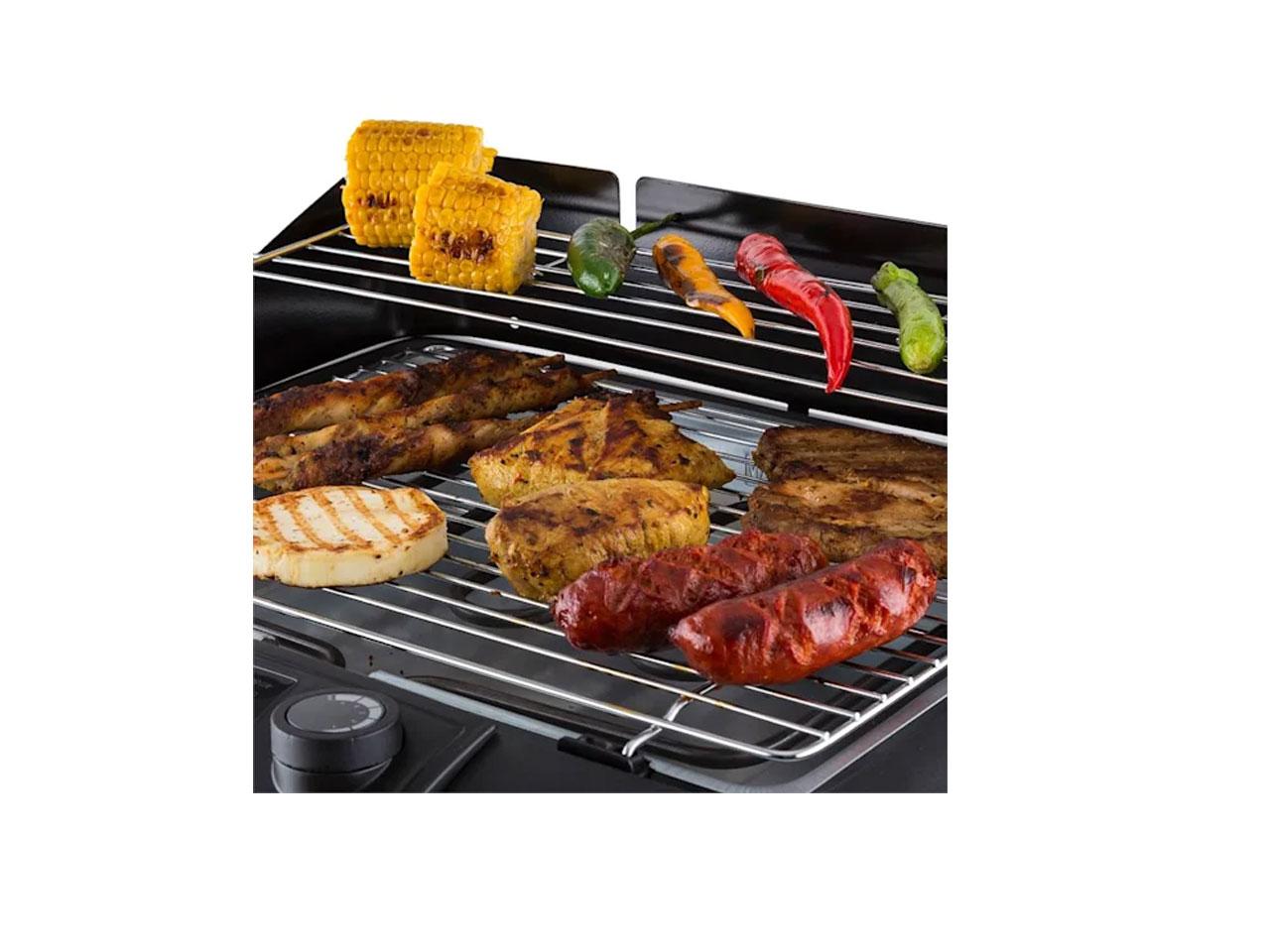 Topné těleso dosahuje max. výkon 2000 W, který lze plynule regulovat termostatem. Vlnovitý tvar topného tělesa zajišťuje rovnoměrné ohřátí 9 dm2 grilovací plochy a garantuje dokonalý kulinářský zážitek. Kontrolní světlo svítí, když je přístroj zapnutý. Pro snadné čištění grilu je topné těleso vyjímatelné, přičemž bezpečnostní spínač ho automaticky vypne, pokud by se těleso během provozu dostalo ze svého stojanu.