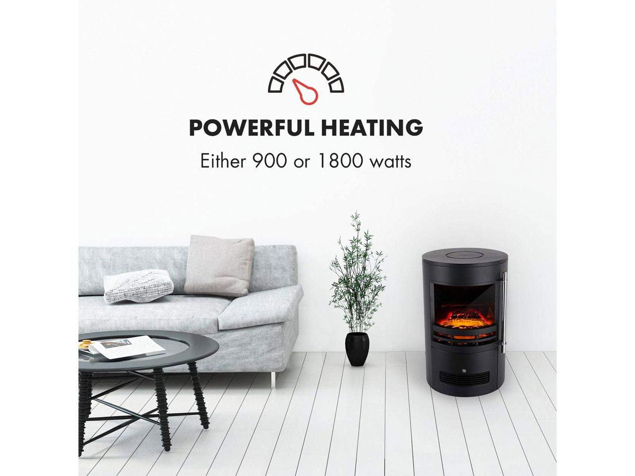Plameny jsou zcela nezávislé na funkce vytápění i během mírných letních nocí. O příjemné teplo se postará přepínatelná funkce vytápění, která ohřívá místnosti s výkonem 900 nebo 1800 W. Pomocí otočného regulátoru lze v případě potřeby přizpůsobit teplo pomocí plynule nastavitelného termostatu. Ovládání elektrického krbu probíhá jednoduše a přímo na zařízení: přepínače jsou diskrétně ukryté za dvířky krbu.