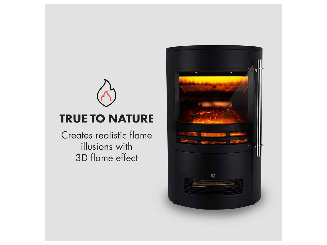 Jedinečný design kulatého litinového krbu v černém provedením vytvoří všude útulnou atmosféru. Díky velkým okénkem získáte perfektní pohled na zdánlivě realistické dřevěné polínka s 3D efektem ohně 3D-Flame-Effect. Z každé perspektivy vám sofistikovaná 3D technologie přináší trojrozměrný dojem zářících polen a hořící plamene. Bez skutečného ohně a nepříjemné saze poskytuje vzhled skutečného ohně v krbu a okamžitě každého zaujme.