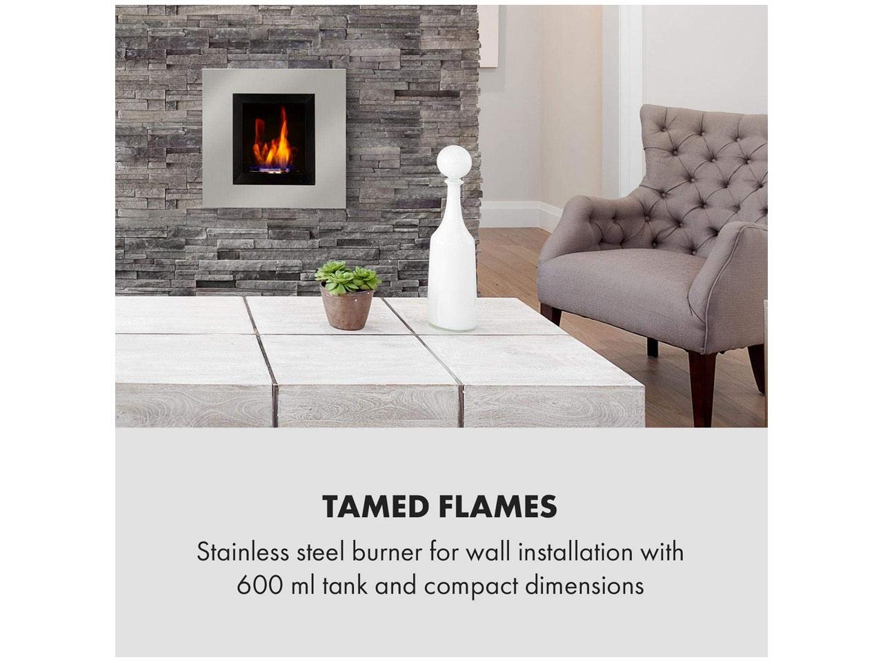 Romantika u krbu: etanolový krb Klarstein Phantasma Cuadro pro prostorově úspornou nástěnnou instalaci.