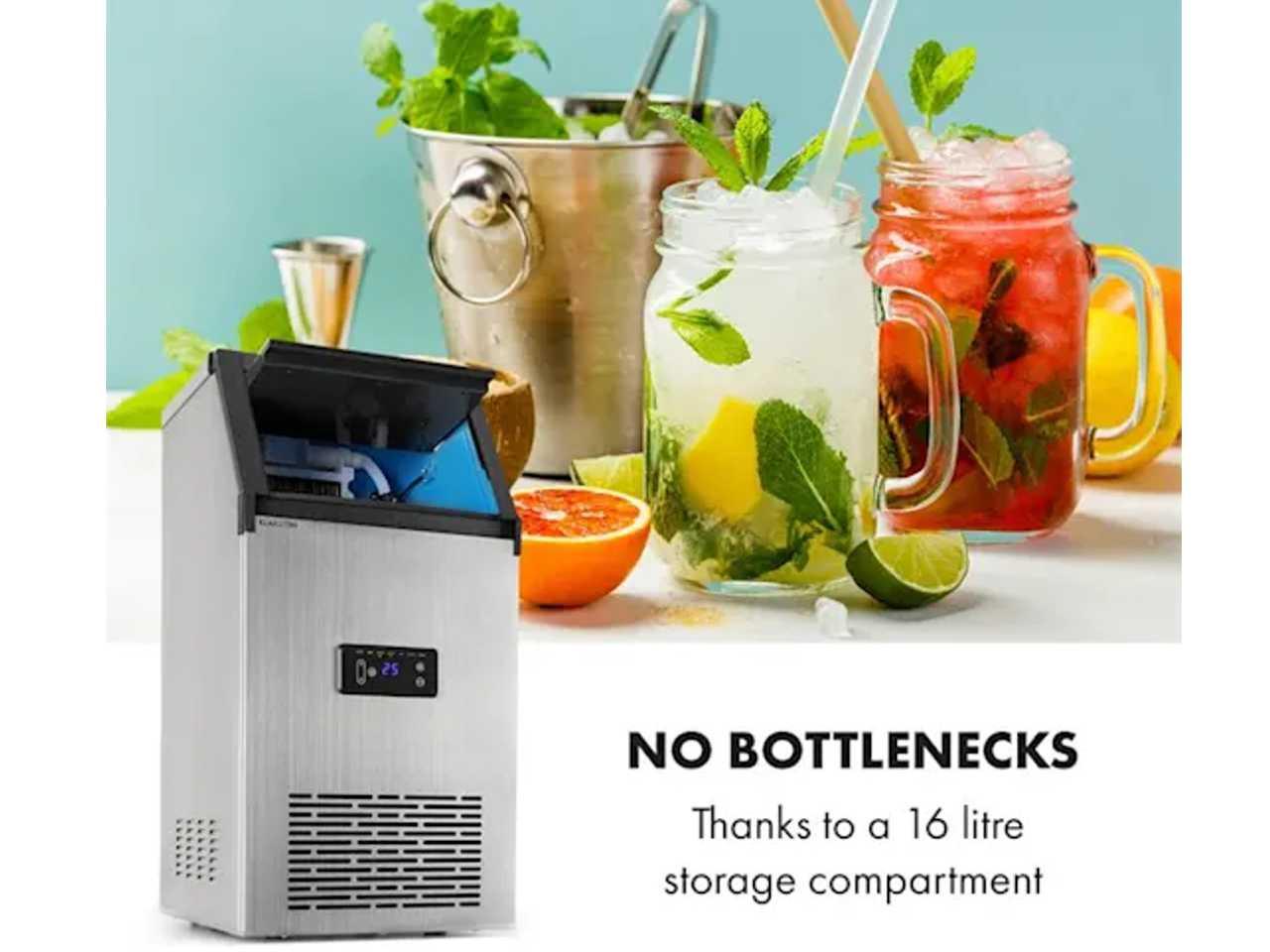 Doba ledová v baru: profesionální zařízení na výrobu kostek ledu Klarstein Glacial spolehlivě zásobuje průzračnými kostkami ledu bary, restaurace nebo večírky.