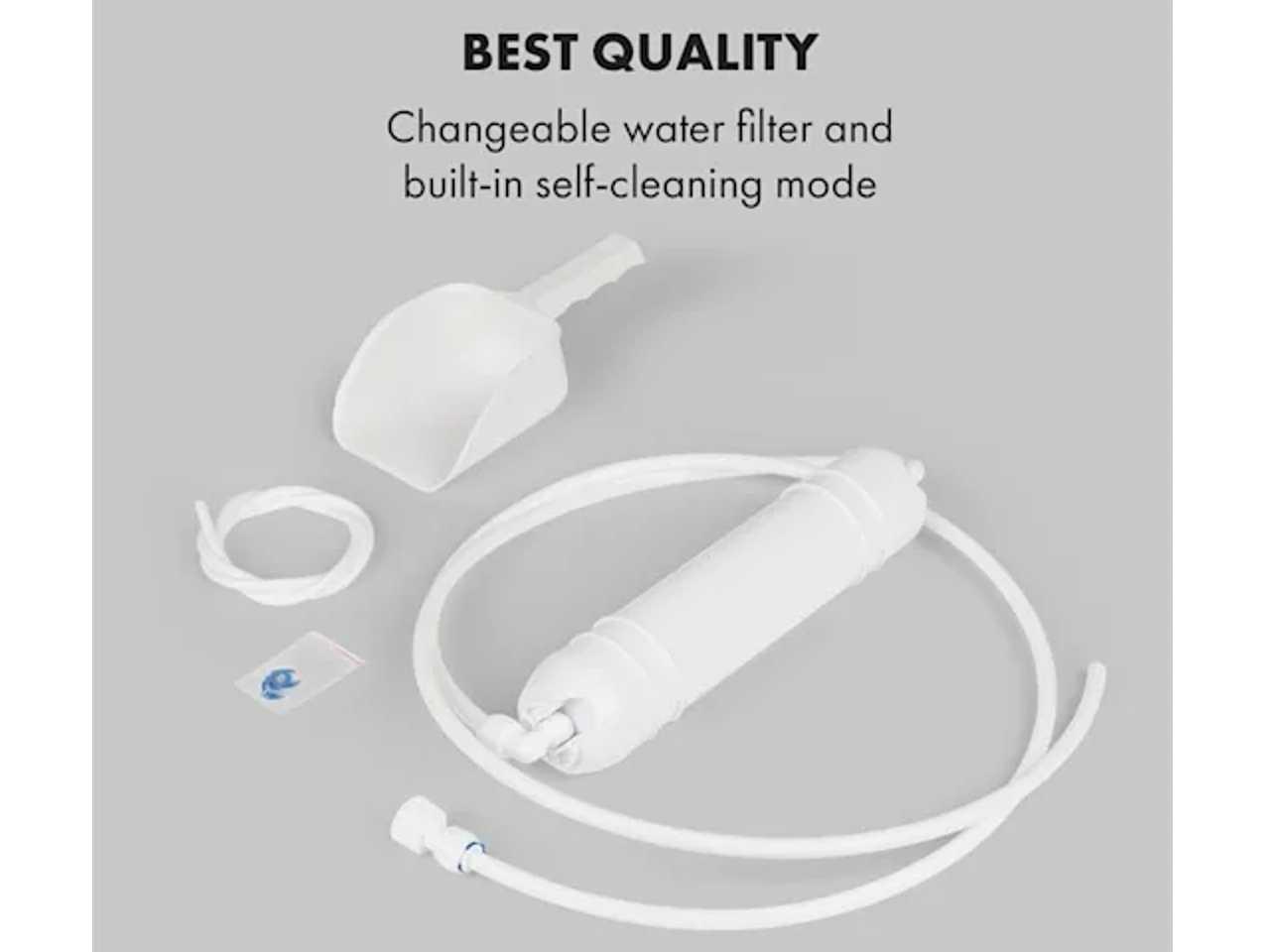 Zařízení na výrobu kostek ledu Klarstein Glacial je navzdory svému vysokému výkonu během provozu obzvlášť tiché. Jeho jednoduchá konstrukce z ušlechtilé oceli se vizuálně bez problémů integruje do většiny barových nebo kuchyňských prostor. Modré vnitřní osvětlení zásobníku ledu poskytuje přehled a vytváří zajímavou atmosféru. O vysokou kvalitu kostek ledu se stará nejen vyměnitelný vodní filtr, ale i jednoduchý samočisticí systém.