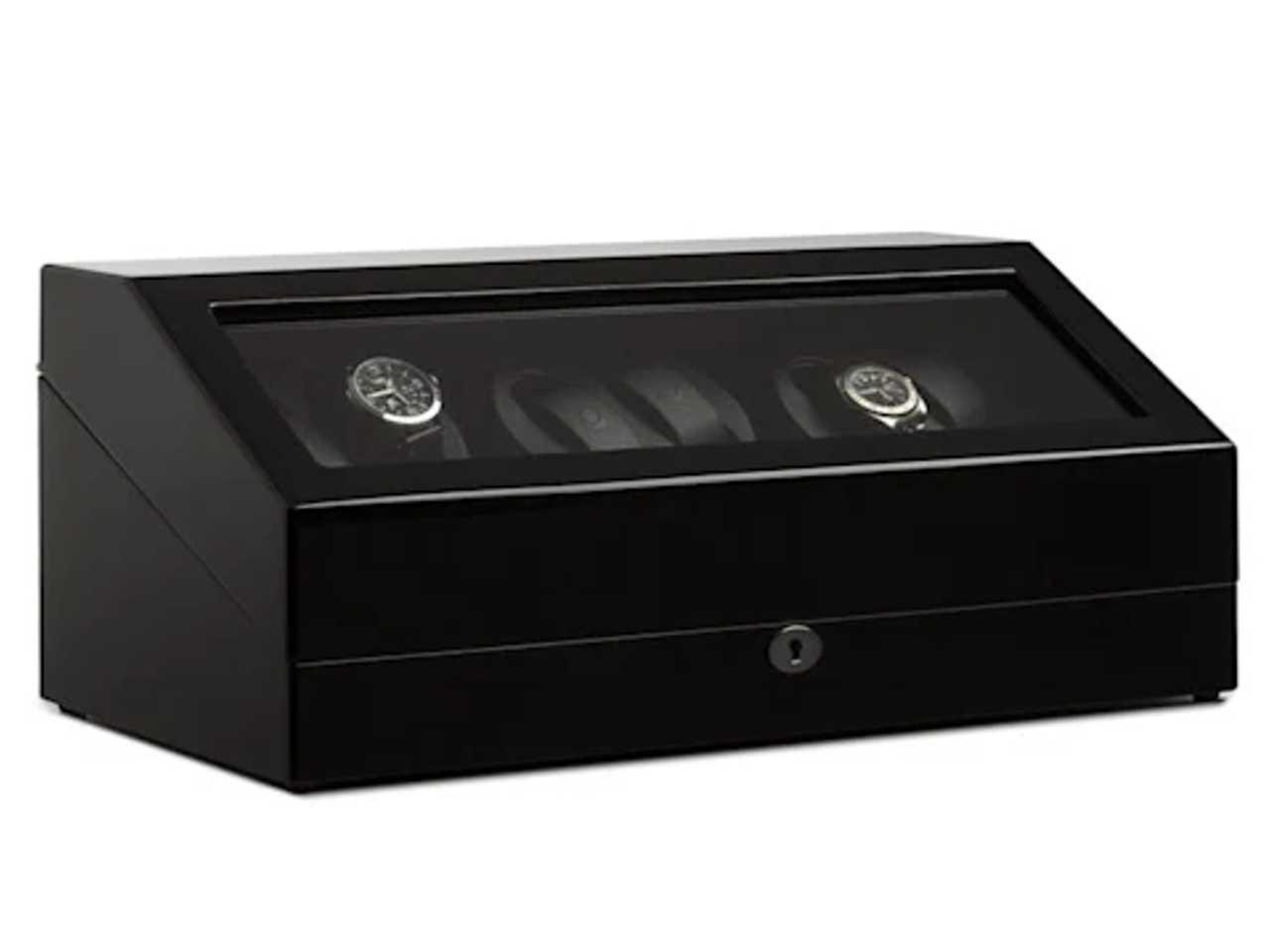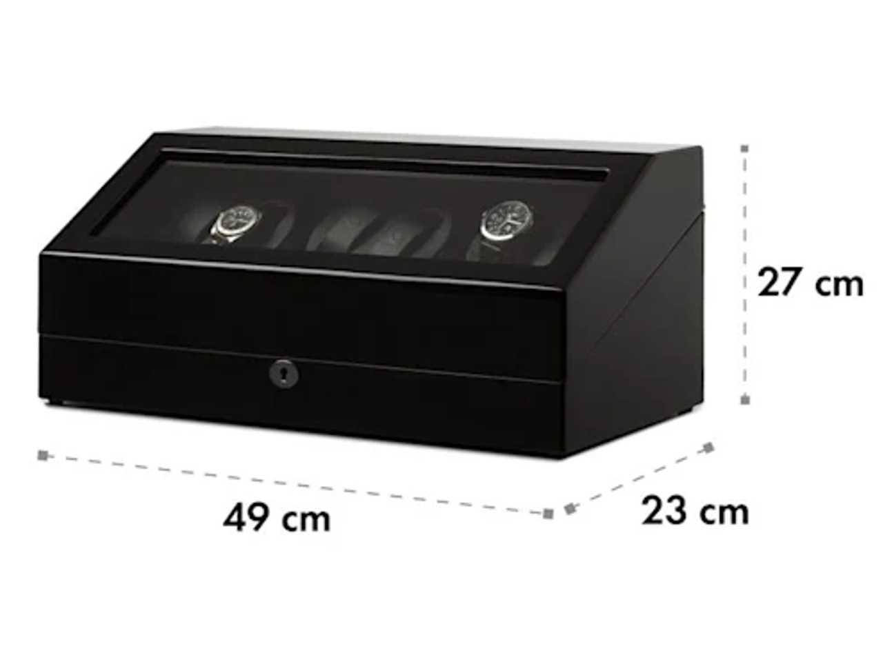 Atraktivní design stojanu a hodinek zapadne do velkého stylu. Velké okénko umožňuje dobrý výhled na hodinky. Plochá černá výstelka nabízí svěží kontrast k vystaveným hodinkám.