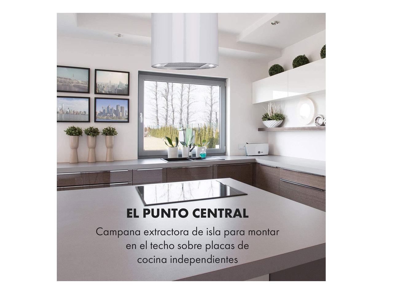 Absolutní ušlechtilý je i vnější vzhled ostrůvkové digestoře Klarstein Beretta. Zaoblené bílé pouzdro z nerezové oceli dodává vašemu ostrovu vaření stylový lesk.