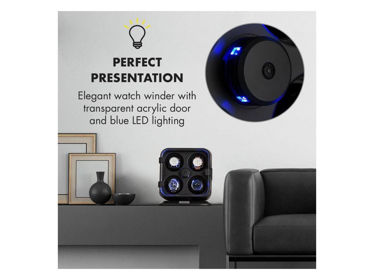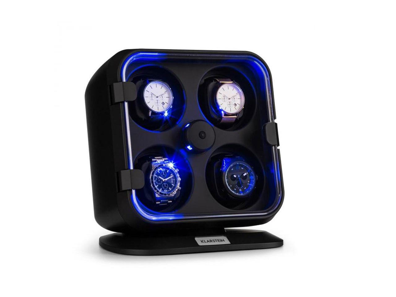 Dokonalá prezentace: elegantní natahovač hodinek s transparentními akrylovými dvířky a modrým LED osvětlením