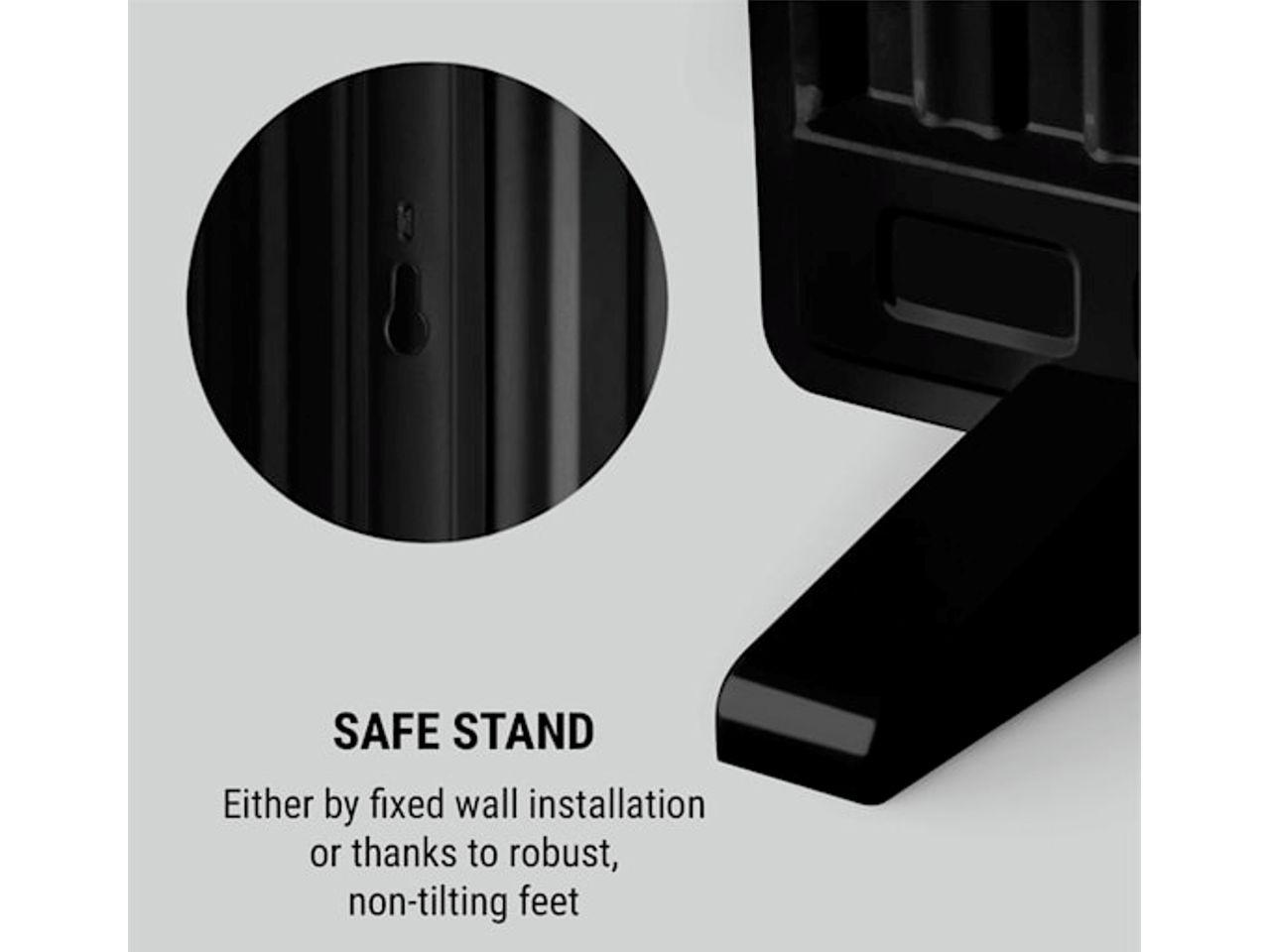 Díky funkci CleverHeat Programming a týdennímu časovači zapínání a vypínání můžete klidně odpočívat a věnovat se svým povinnostem, dokud je olejový radiátor stále v provozu: V určeném čase se spolehlivě sám vypne. Stabilní používání zajišťují dvě bezpečné nožičky. Díky dodávané montážní sestavě může být topné těleso upevněny pohodlně a prostorově úsporně na stěnu.