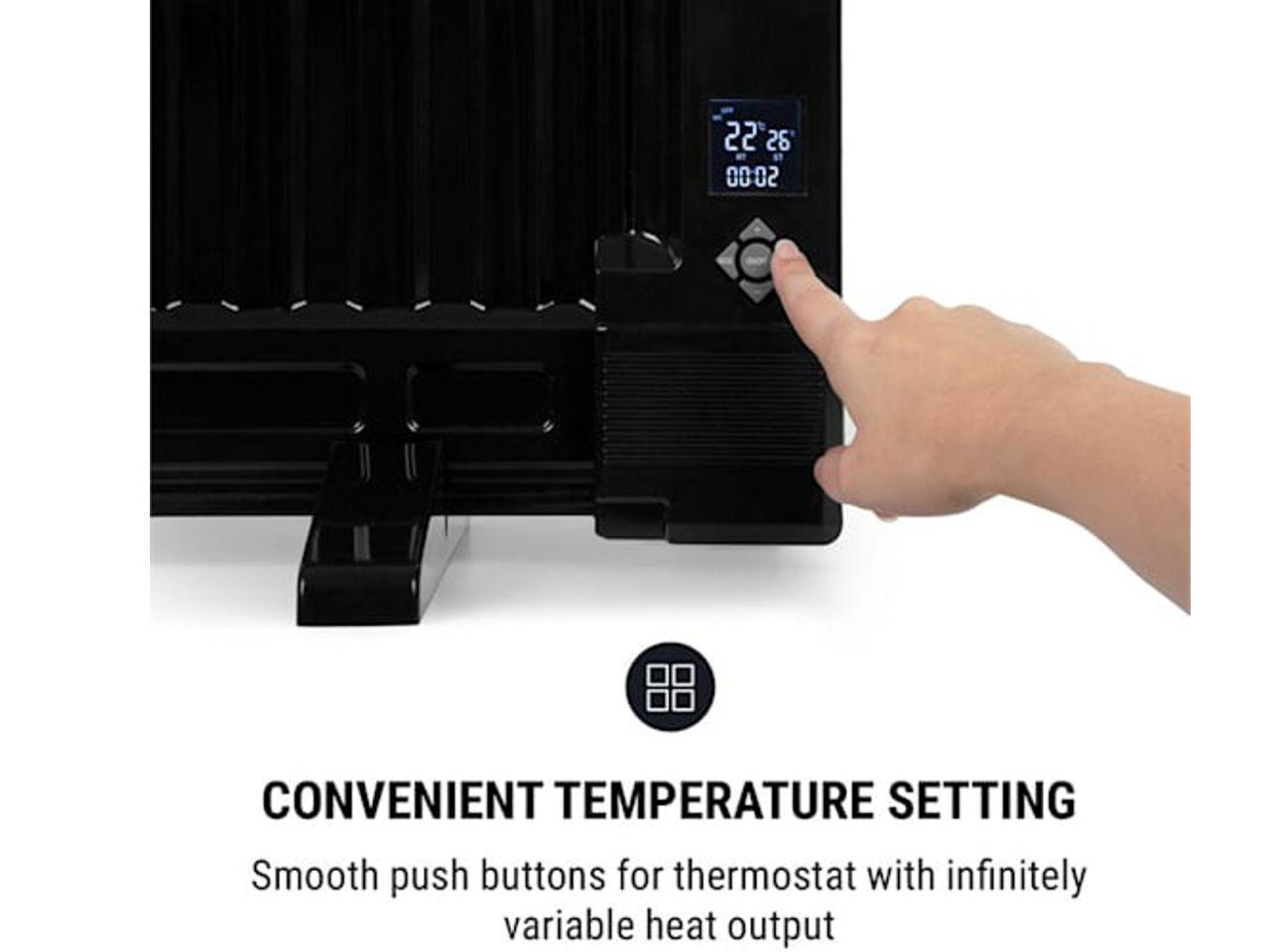 Při topném výkonu 800 W se olejový radiátor oneConcept Wallander velmi rychle ohřívá a díky funkci termostatu poskytuje spolehlivé a rovnoměrné teplo. Ovládání zařízení Wallander je velmi jednoduché: pomocí LED displeje a elektronického ovládání můžete vždy velmi jednoduše sledovat a nastavovat požadované teploty. Mimořádně úzký design s extra velkou topnou plochou se postará o optimální rozdělení tepla. Ochrana proti přehřátí a pojistka proti převrácení umožňují velmi bezpečný provoz radiátoru.