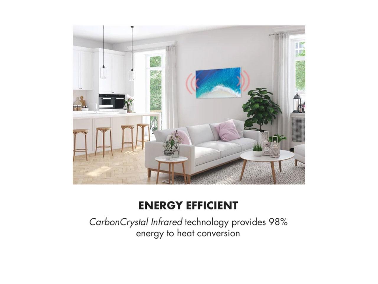 S výkonem 600 W šíří k lidské pokožce velmi příjemné infračervené teplo, které je vyzařováno cíleně na osoby v blízkosti ohřívače. Topný panel je zároveň velmi energeticky úsporný: díky použití technologie CarbonCrystal Infrared se až 98% výkonu přeměňuje na tepelné záření. S termostatem a promyšlenými funkcemi, jako jsou funkce automatického vypnutí a detekce otevřeného okna OpenWindow Detection, splní i nfračervený ohřívač i ty nejnáročnější požadavky.