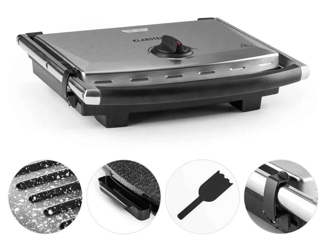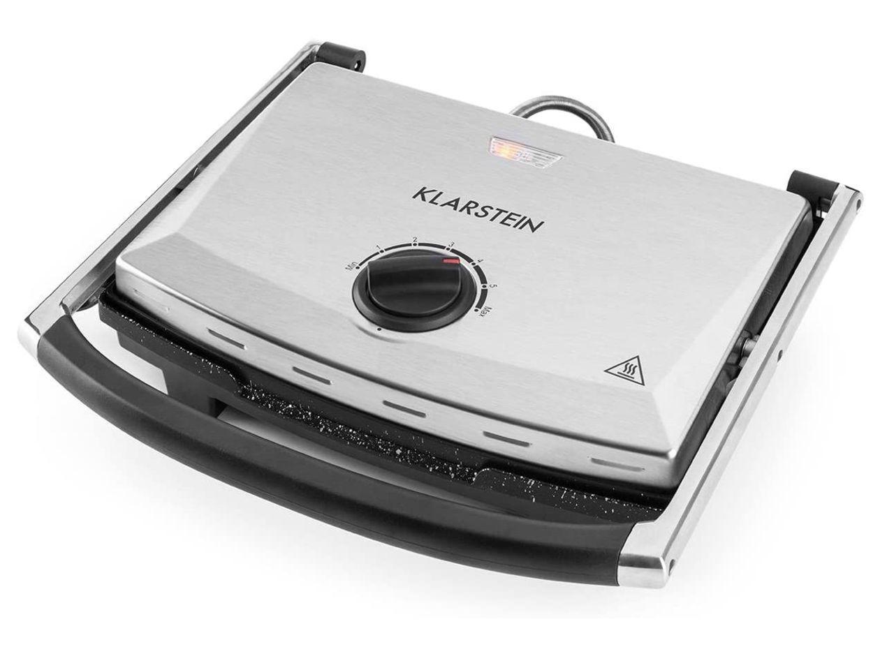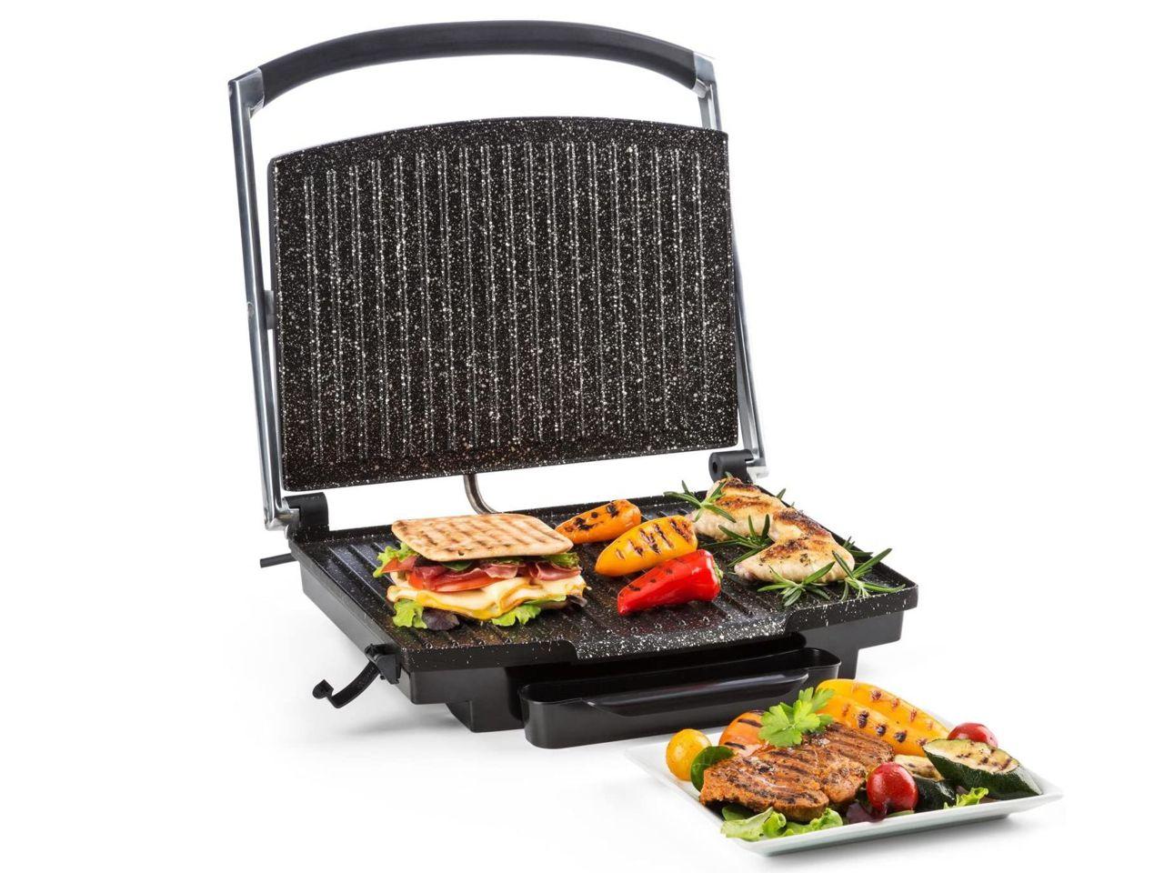 Klarstein Edelstein je multifunkčním kontaktním grilem, pomocí kterého můžete připravit lahodné toasty, grilovat maso a zeleninu i zapékat panini. Velká grilovací plocha zvládne přípravu pokrmů za velmi krátkou dobu, k čemuž přispěje také sklopné víko. Grilovací plocha je opatřená nepřilnavým povrchem, ten zabrání nežádoucímu připékání a přilepení potravin. Celý popis