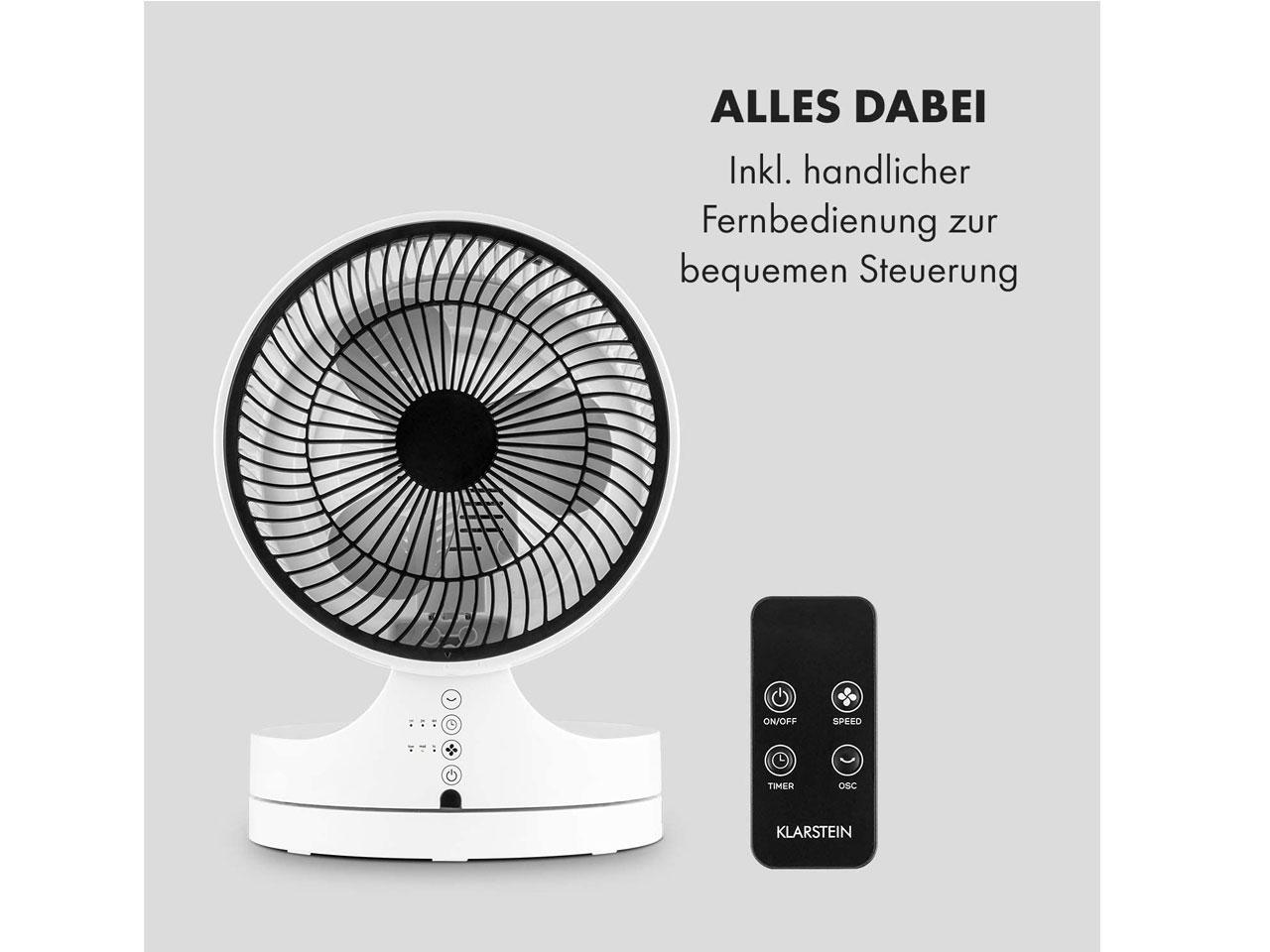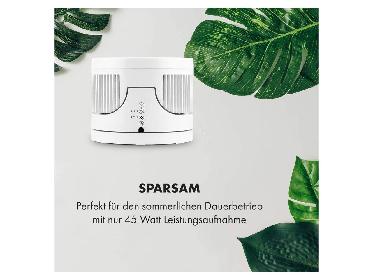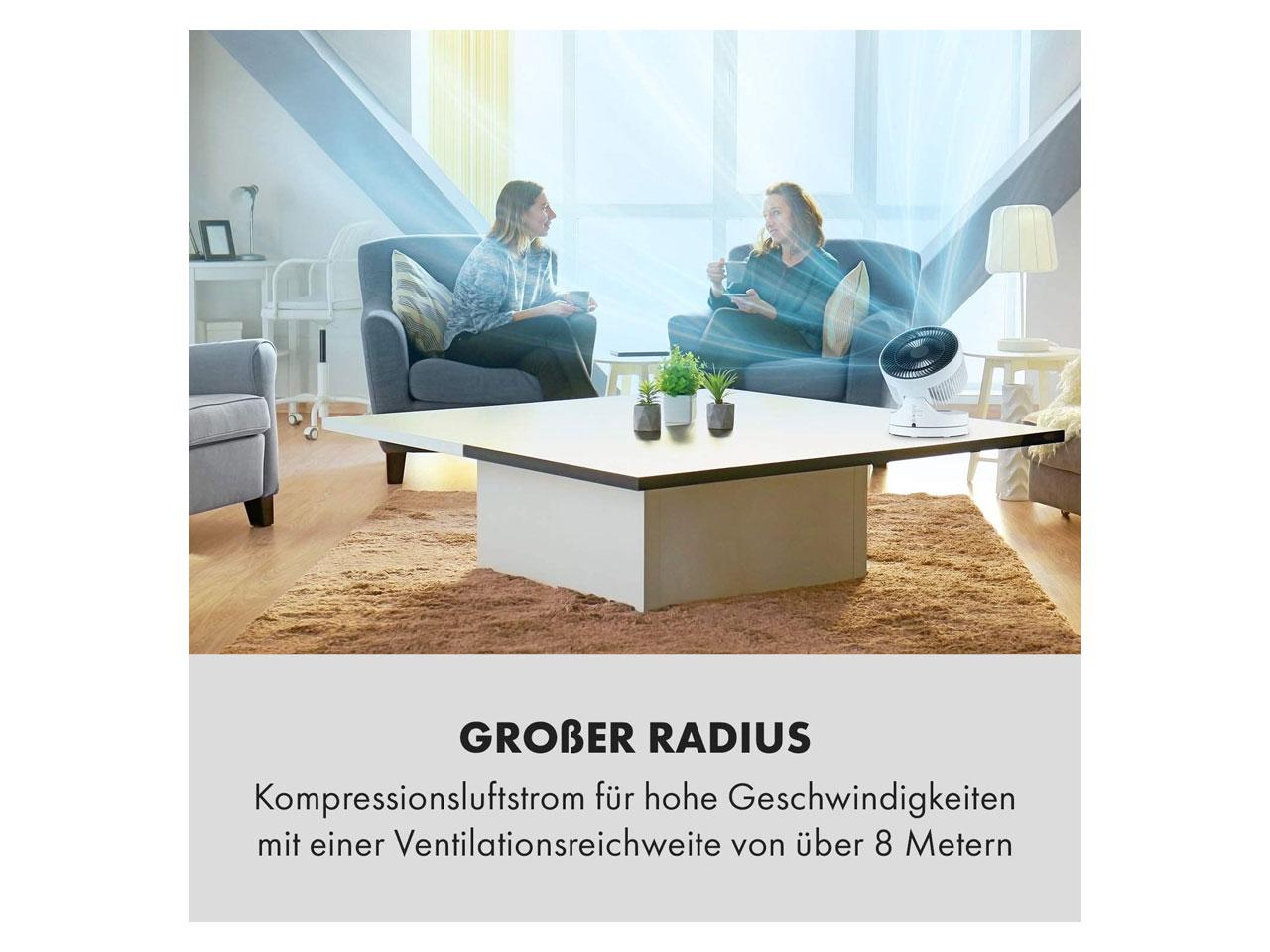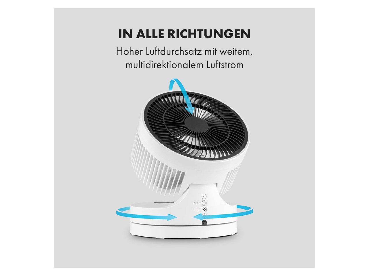 Výkonný ventilátor produkuje silný, široký a do všech směrů proudící vzduch, přičemž jeho provoz je velmi tichý. Navíc hlavici lze dvoustupňově naklonit pro správné nasměrování osvěžujícího vzduchu. Směr, sílu a dobu lze individuálně přizpůsobit. Povedený design ventilátoru ideálně doplní pracovny či obývací pokoje, je však dostatečně neutrální na vystavení do všech typů místností. Ventilátor poslouží i jako doplněk ke klimatizaci na kontrolu cirkulace vzduchu. Na dotykovém ovládacím panelu či přes dálkový ovladač lze nastavit časovač, rychlost i otáčení ventilátoru.
