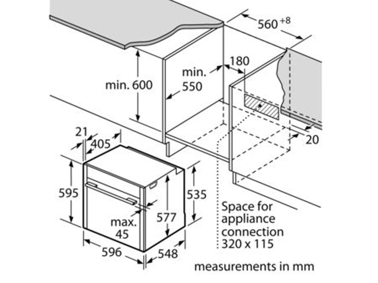 Rozměry výklenku (v x š x h): 585 mm - 595 mm x 560 mm - 568 mm x 550 mm