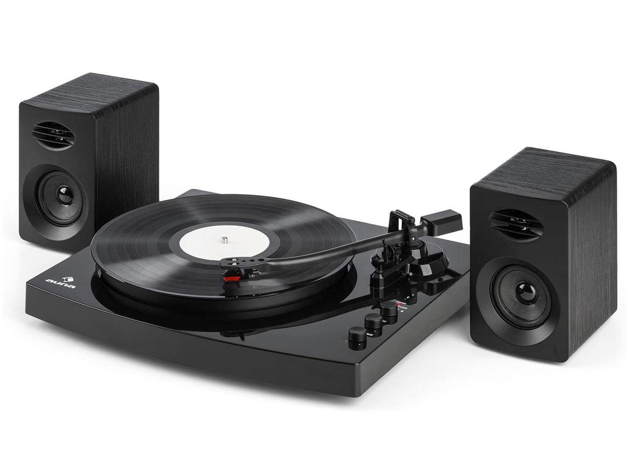 Kompletní systém pro vinylové desky: gramofon včetně dvou stereo reproduktorů