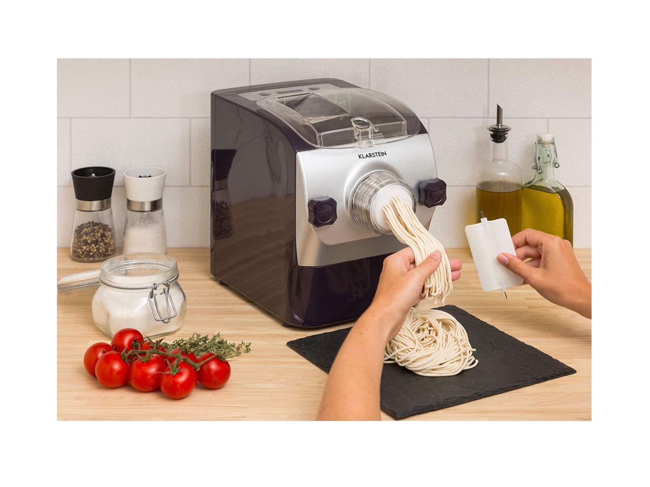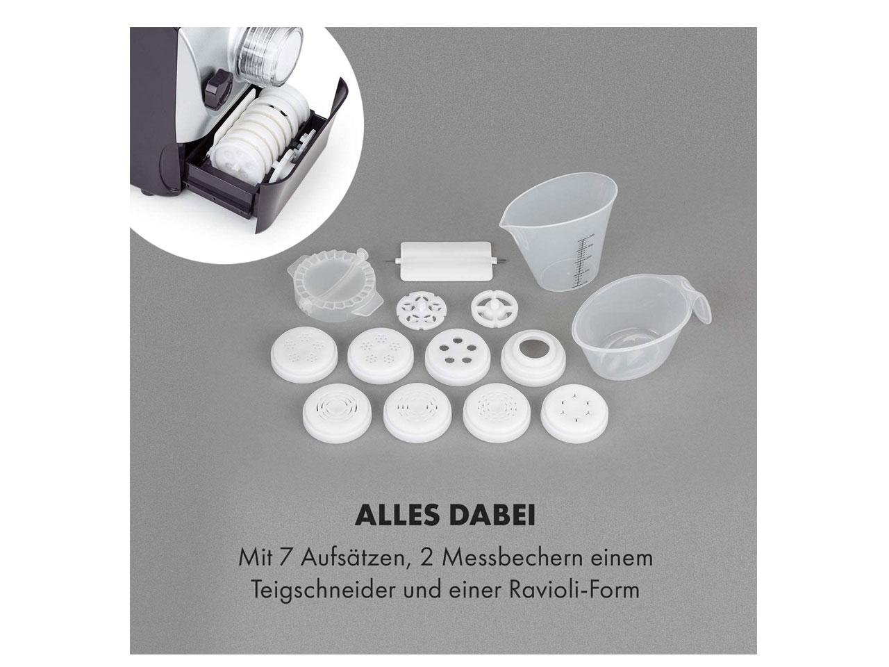 Motor zařízení Pastamania má vysoký výkon 260 W a je mimořádně tichý s provozním hlukem 60 dB. Uvnitř šikovného zařízení lze uhníst až 500 g mouky za 3 minuty a už po 10 minutách můžete házet do vroucí vody připravené těstoviny. 7 nástavců formuje těsto a tvoří ty nejkrásnější těstovinové výtvory, které jsou dokonce doplněny přiloženou formou na ravioli. Zařízení pracuje zcela automaticky až na přidání 1, 2 nebo 3 možných odměrek naplněných moukou a odpovídajícího množství vody. Všechna nastavení se přitom pohodlně uskutečňují stiskem 5 tlačítek a dají se kontrolovat na přehledném LED displeji. Všechny zabudované plastové díly jsou vhodné pro zpracování potravin a po použití se dají snadno umýt a vyčistit. Díky modernímu designu, jednoduchému ovládání a rozmanitosti těstovinových výtvorů je zařízení na výrobu těstovin Klarstein Pastamania nezbytností pro všechny milovníky italské kuchyně.