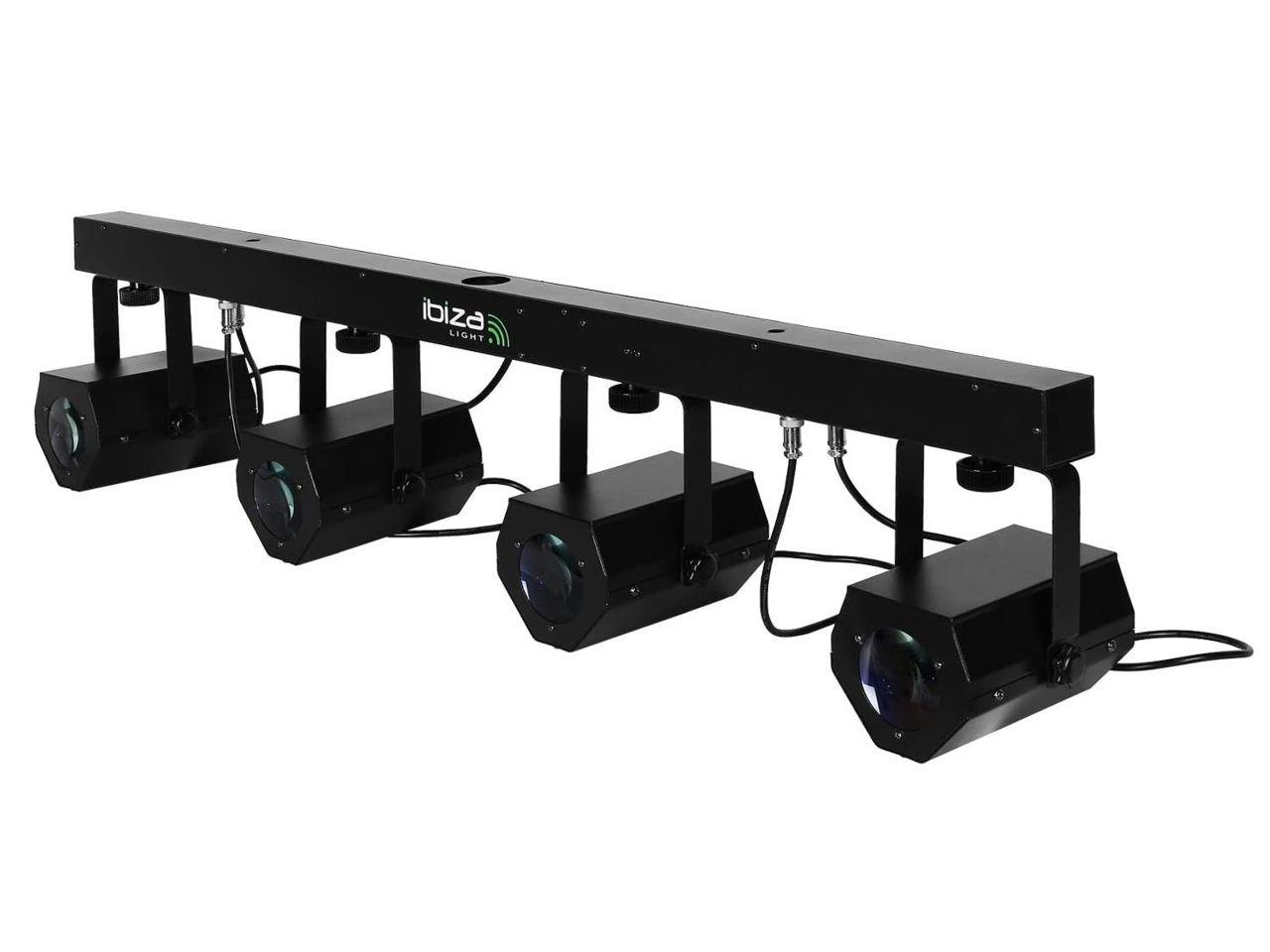 Pro zkušenější osvětlovačů jsou k dispozici DMX porty, sedm DMX kanálů a master/slave provoz na současné používání více zařízení. Zařízení má čtyři LED moonflower efekty, 228 LED diod červené, zelené, modré, bílé a oranžové barvy a pevnou tyč z kovu určenou na zavěšení. Všechna světla lze samostatně otáčet a naklánět, díky čemuž lišta umožňuje dosáhnout ideálního osvětlení. Nosná tyč je vhodná pro připevnění k stojanu. Ibiza 4Moon-Bar má nízkou spotřebu energie, dlouhou životnost a snadnou obsluhu, a tak je perfektní pro použití při organizování párty, karaoke akcí a osvětlování menších barů.