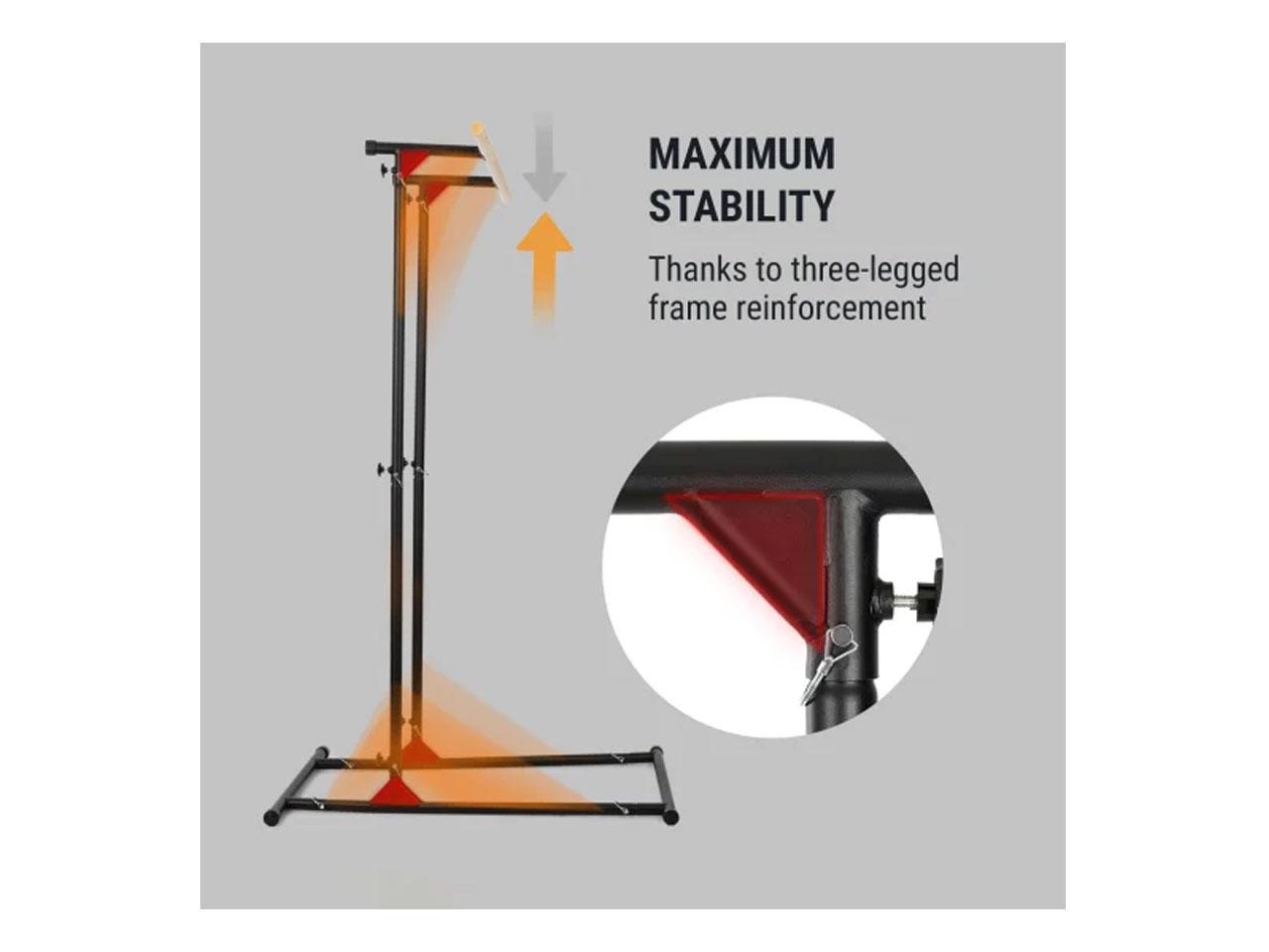 Robustní ocelová konstrukce zajišťuje za všech okolností dobrou stabilitu, která je získaná prostřednictvím třínohého zpevnění rámu. Po ukončení tréninku se dá stanice jednoduše rozložit na několik jednotlivých částí a uložit v přenosné tašce nebo pohodlně přepravit.
